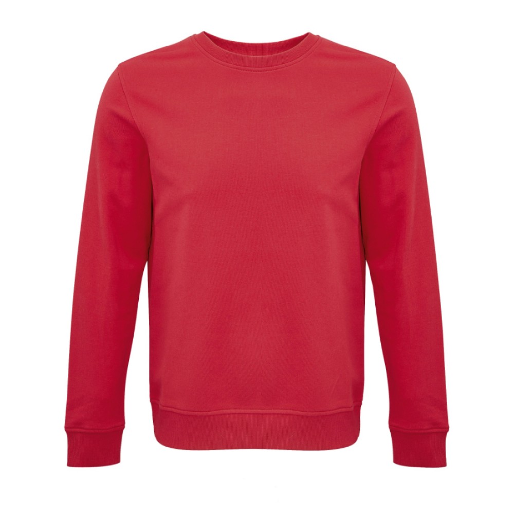 Свитшот унисекс без начеса (петлевой футер) выполнен из 80% органического хлопка и 20% переработанного полиэстера, плотностью 280 г/м2.