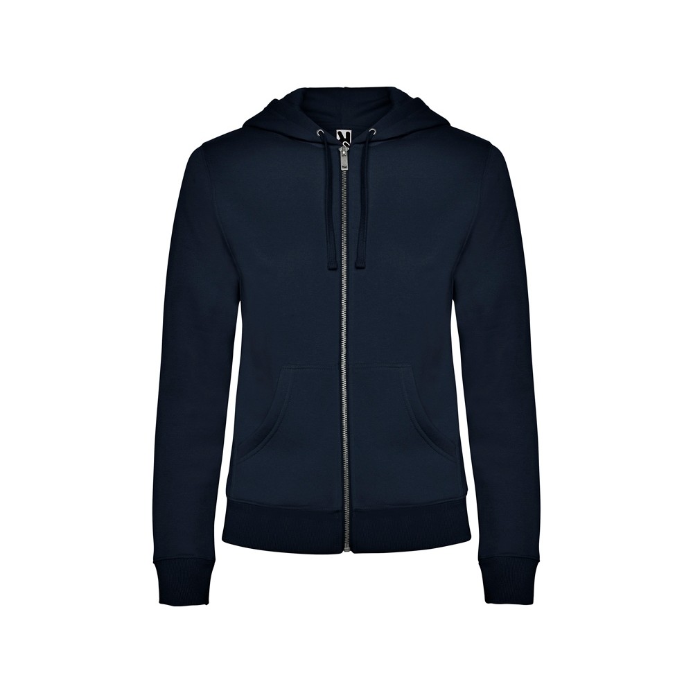 Женская толстовка на молнии с капюшоном на подкладке в тон.
