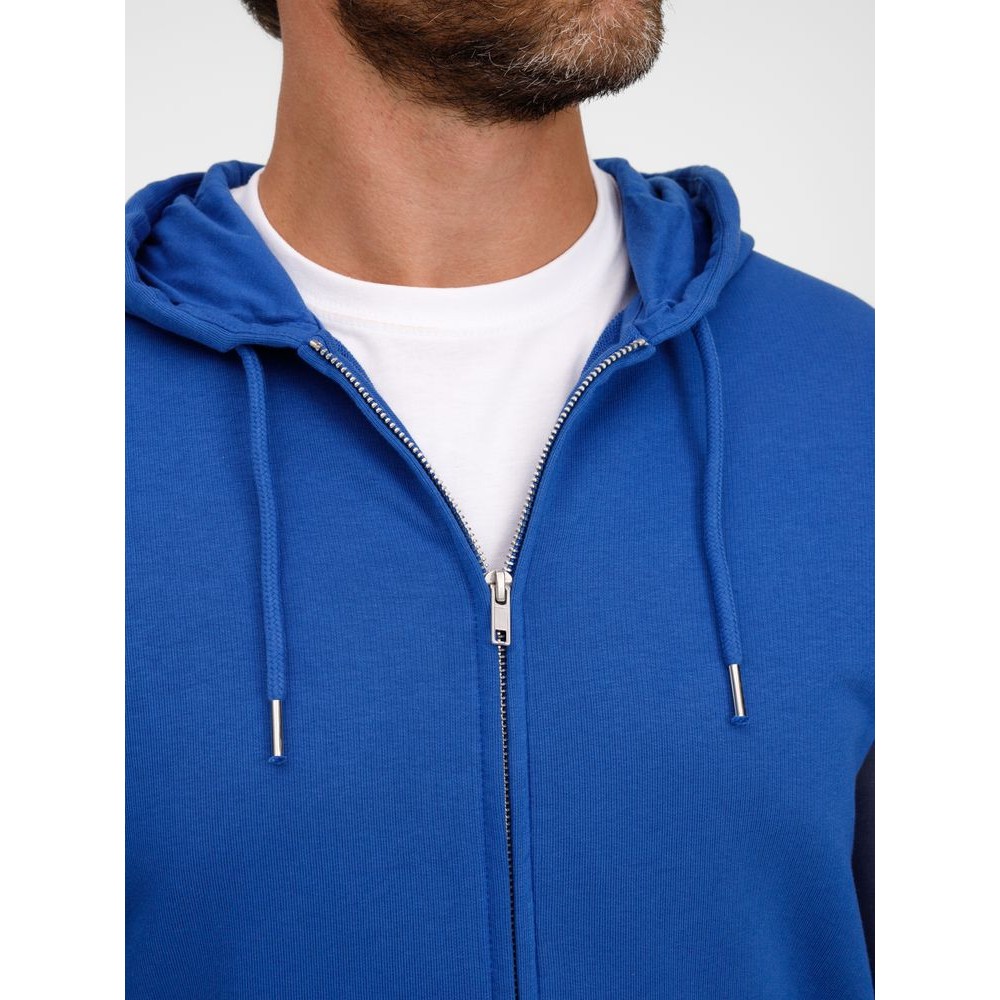 Базовая толстовка унисекс на молнии выполнена из органического хлопка и переработанного полиэстера.