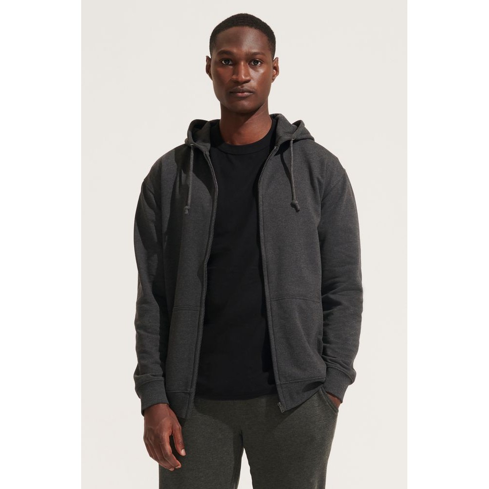 Толстовка унисекс на молнии и с капюшоном выполнена из хлопка с добавлением переработанного полиэстера.
