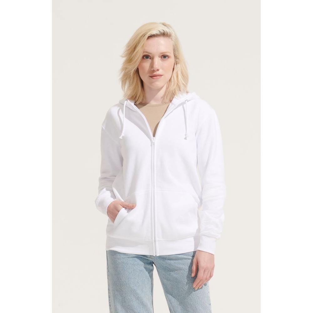 Толстовка унисекс на молнии и с капюшоном выполнена из хлопка с добавлением переработанного полиэстера.