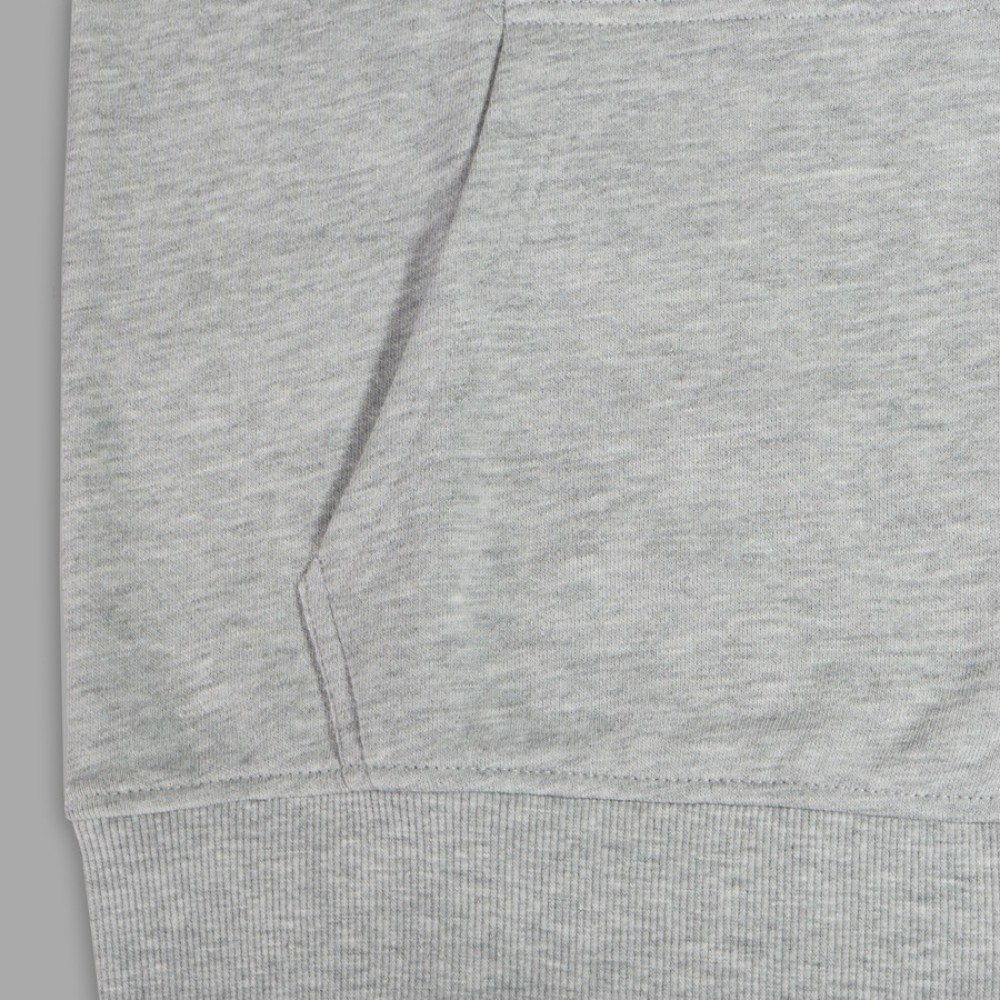 Капюшон затягивается шнурком-кулиской с прорезиненными эглетами. На передней стороне изделия два удобных кармана кенгуру. Манжеты и низ обработаны рибом 2х2.