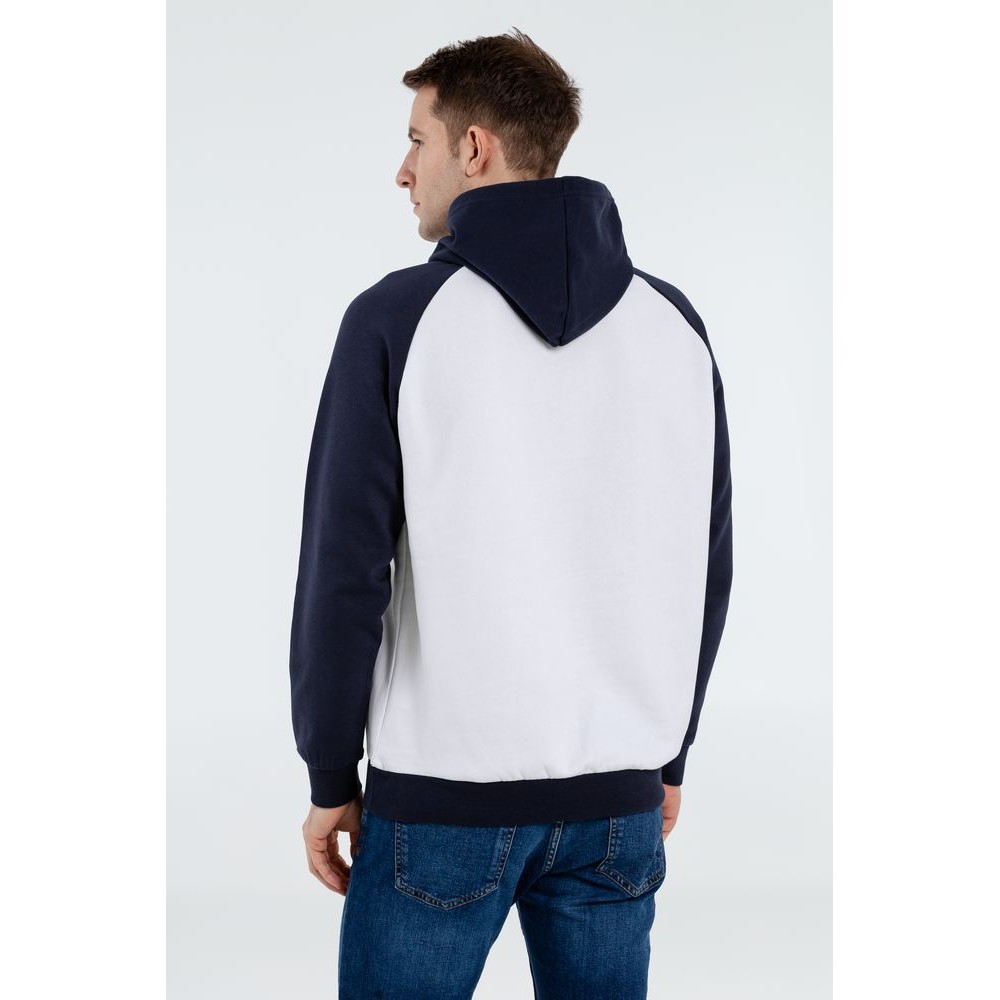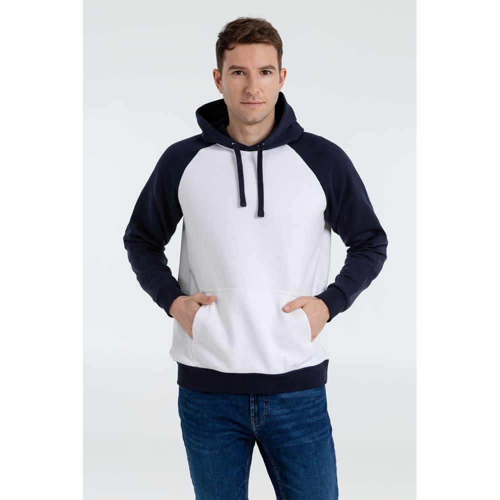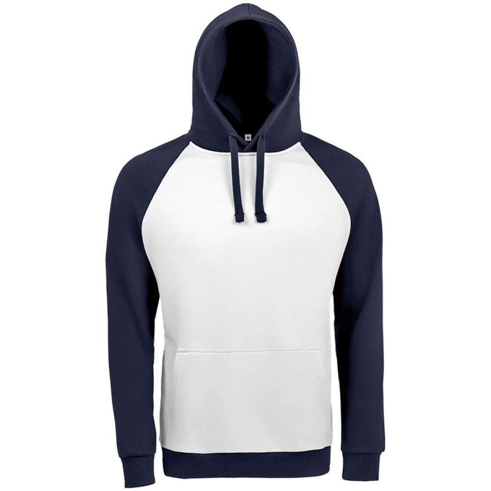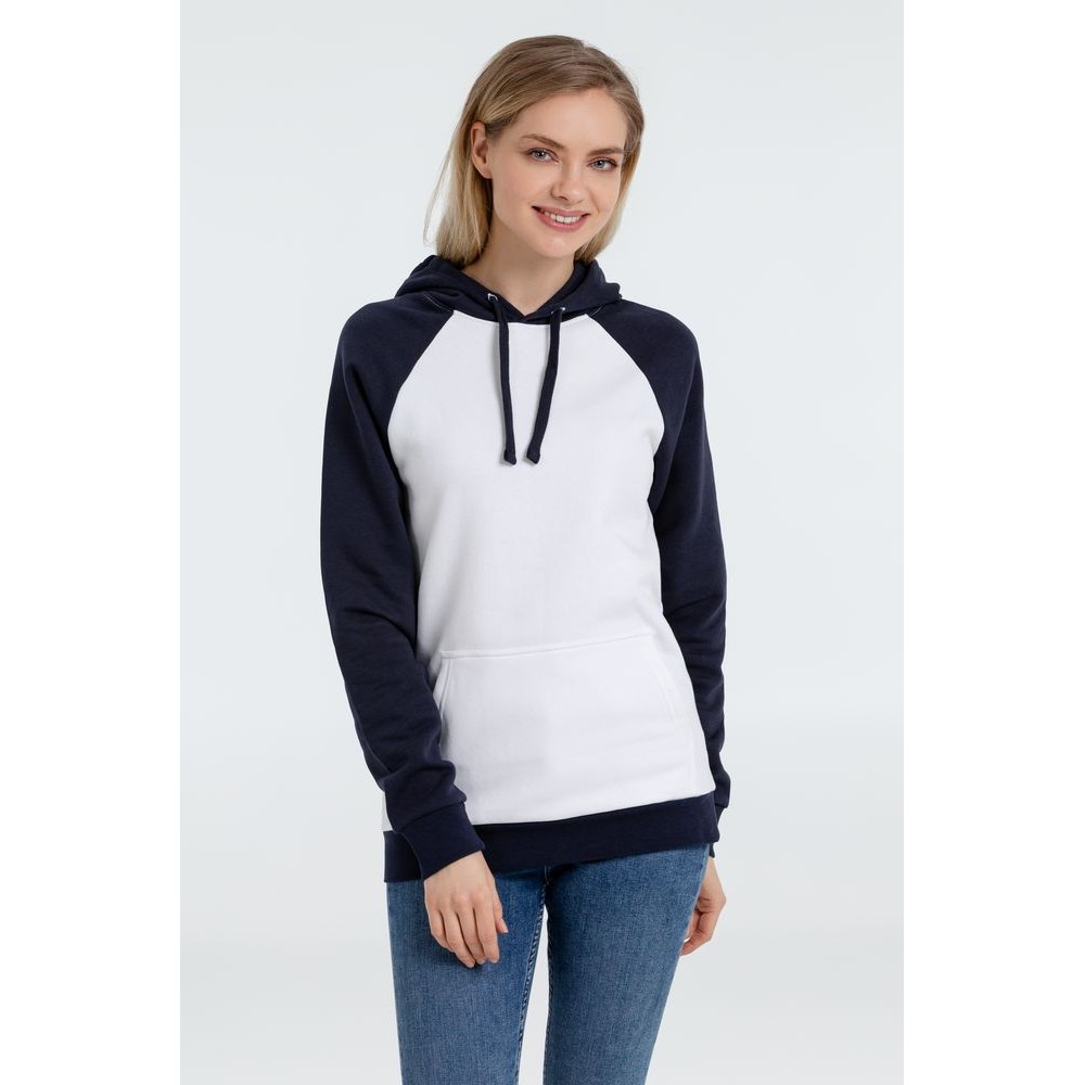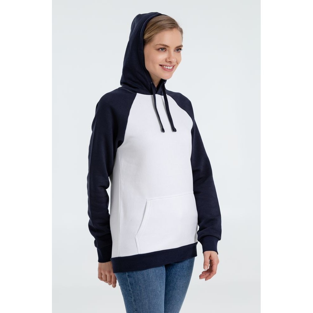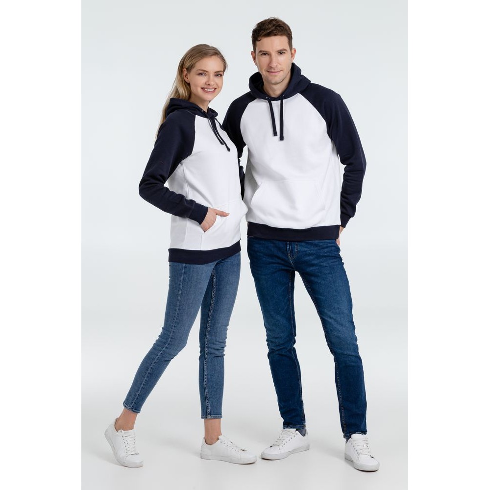 Двухцветная утепленная толстовка унисекс с рукавами реглан и карманом-кенгуру.