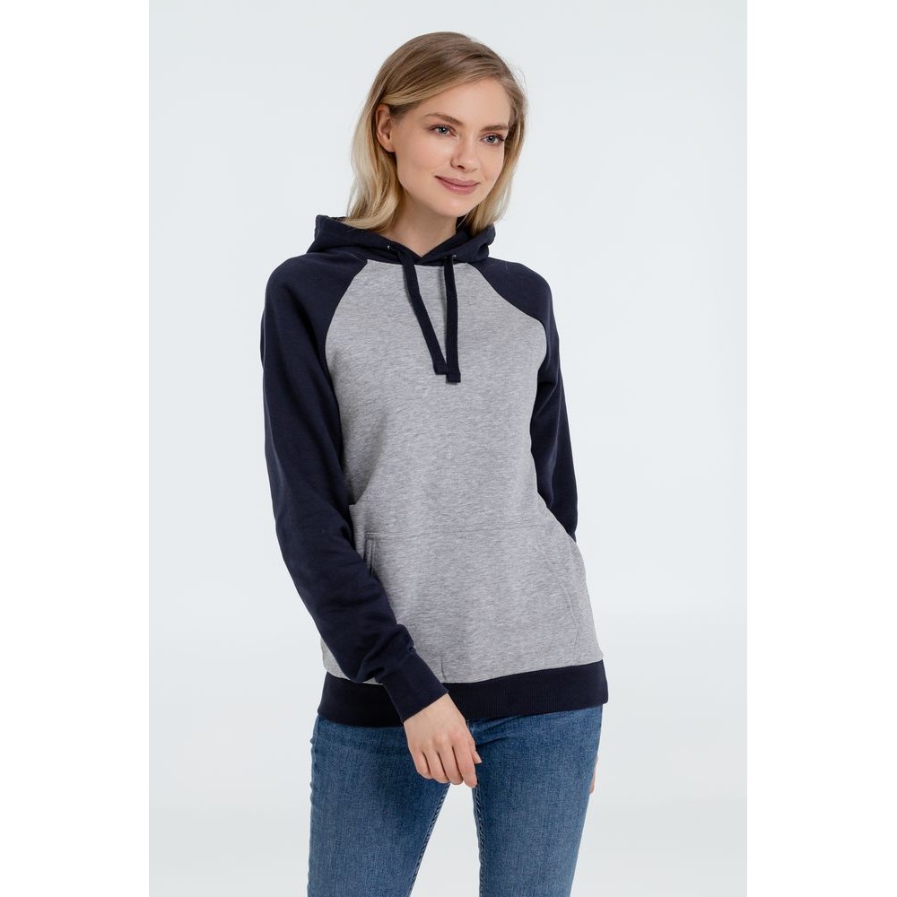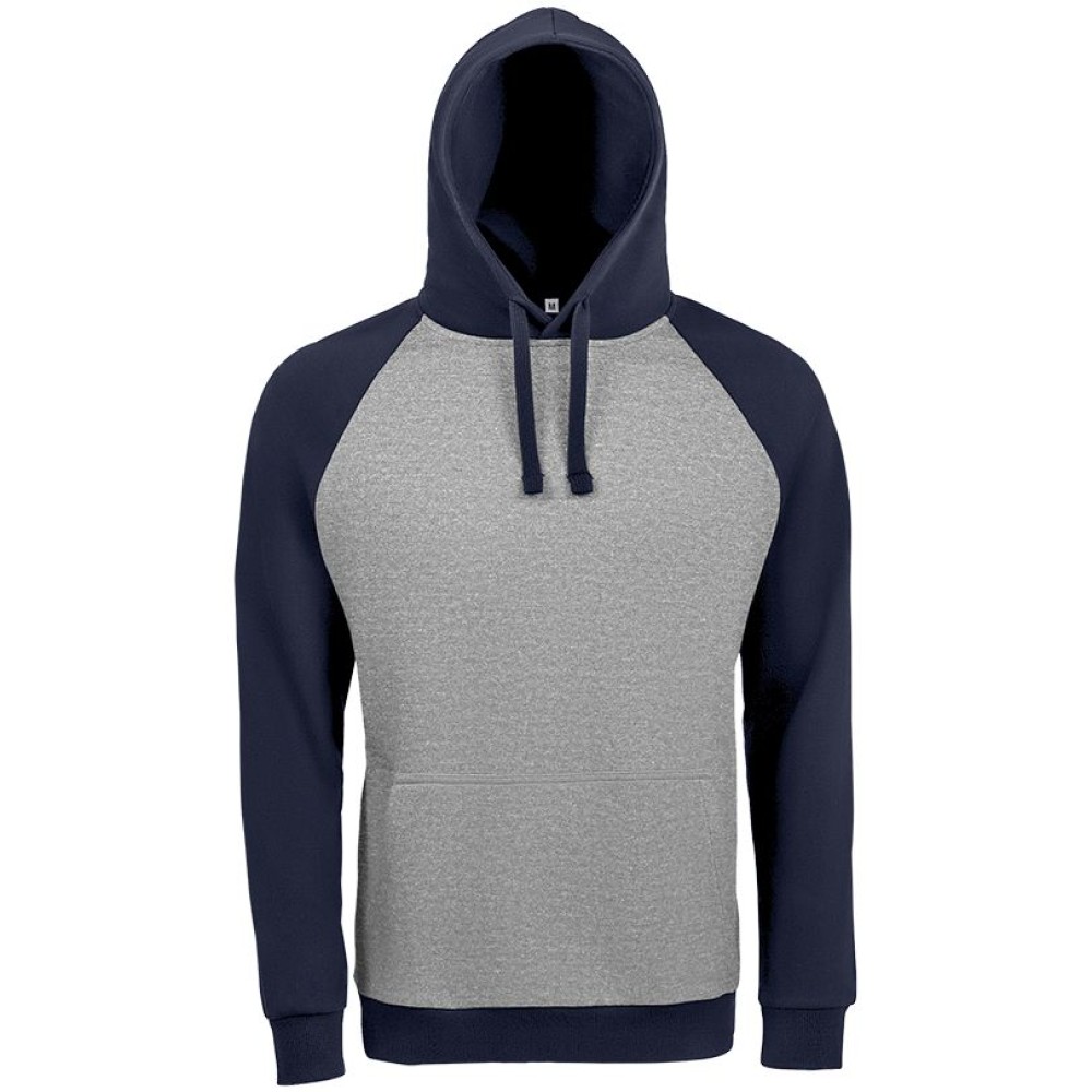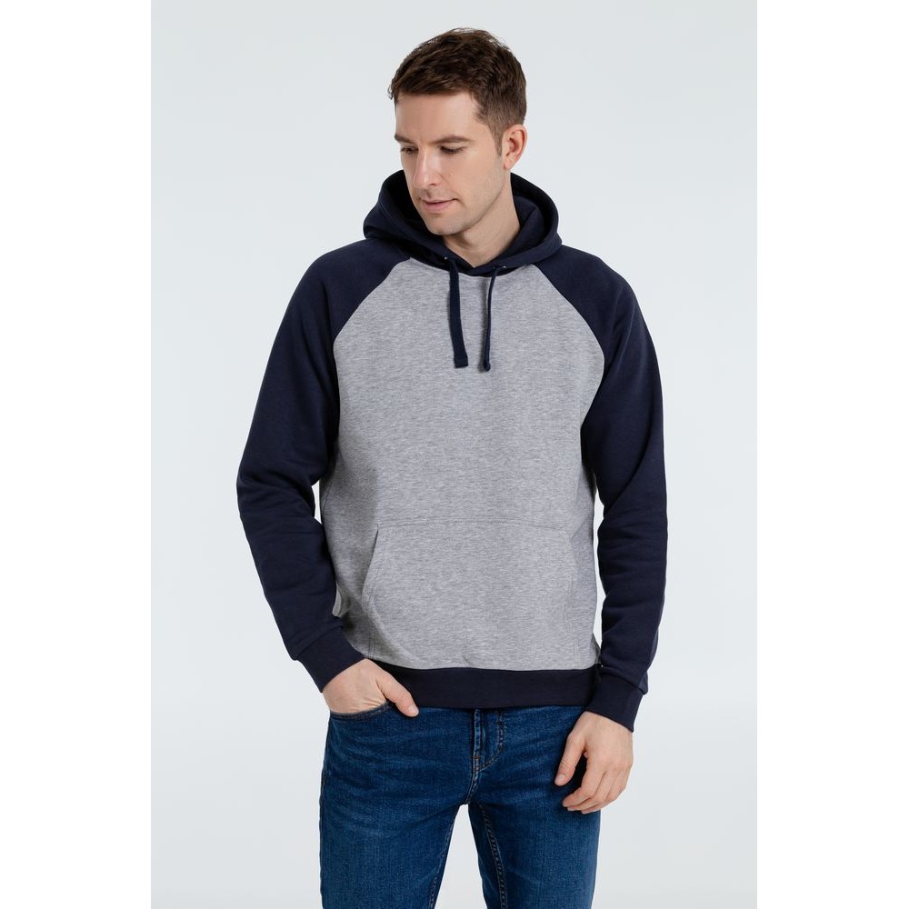 Двухцветная утепленная толстовка унисекс с рукавами реглан и карманом-кенгуру.