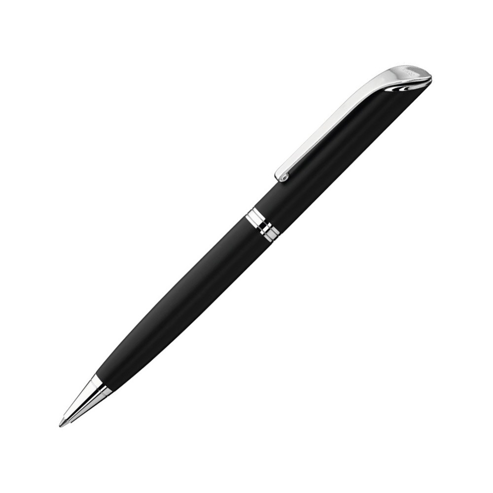 Металлическая шариковая ручка с поворотным механизмом в матовом корпусе. Глянцевый хромированный наконечник, клип и фурнитура.