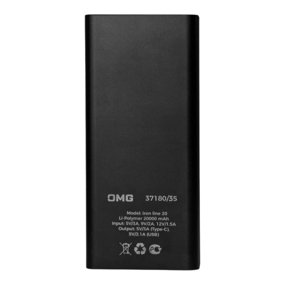 Универсальный аккумулятор Iron line 20 (20000 мАч), металл, серебристый, 14,7х6.6х2,7 см
