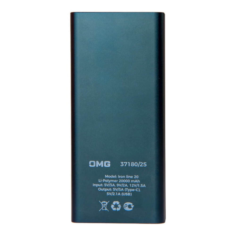 Универсальный аккумулятор Iron line 20 (20000 мАч), металл, серебристый, 14,7х6.6х2,7 см