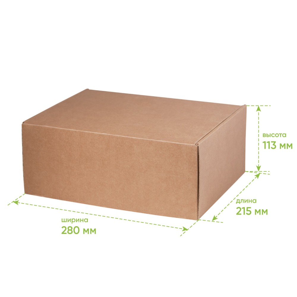 Технические характеристики Подарочная коробка универсальная малая, крафт, 280 х 215 х 113мм