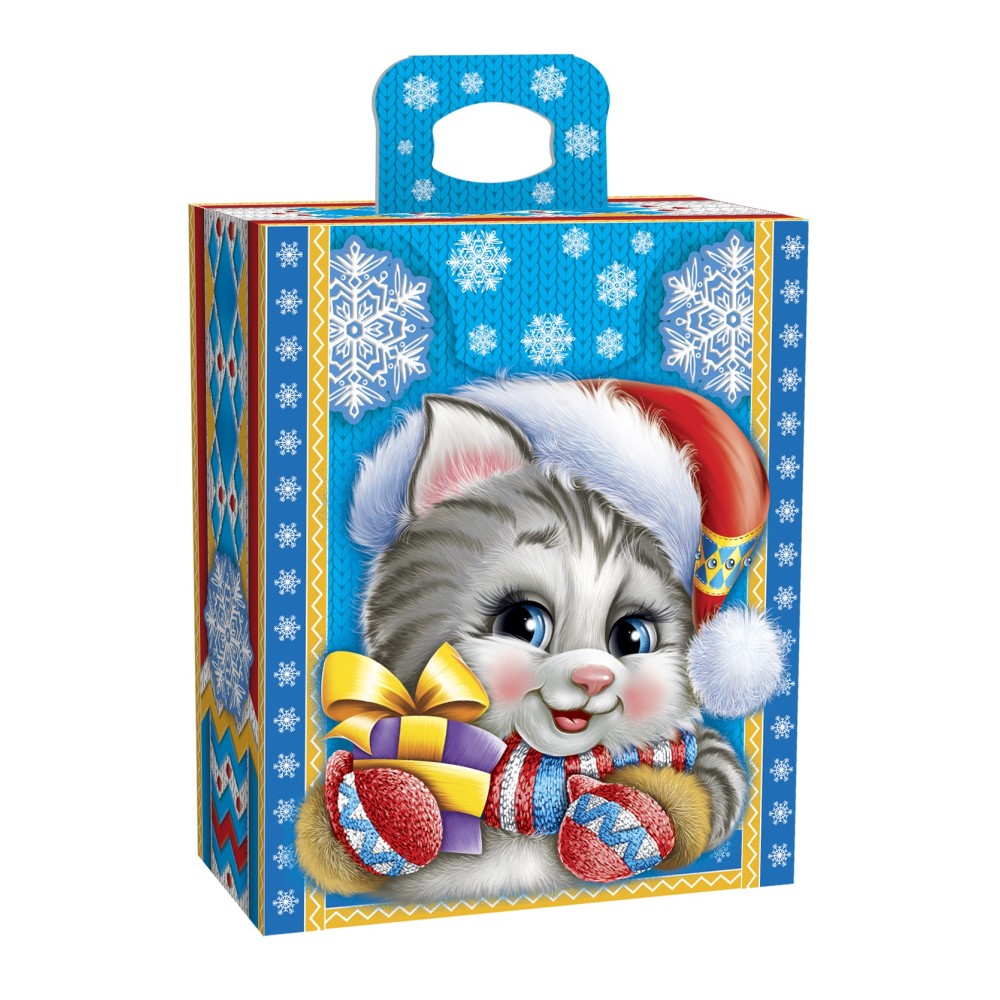 Это праздничная упаковка, стилизованная под зимнюю тематику. Упаковка отлично подходит в качестве подарка, создавая атмосферу праздника и веселья.