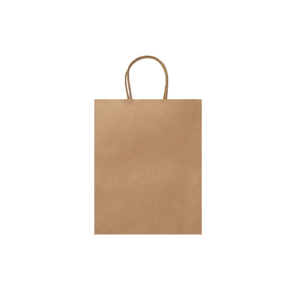 Бумажный пакет 110 г/кв.м натуральной отделки с усиленными короткими ручками витого дизайна.