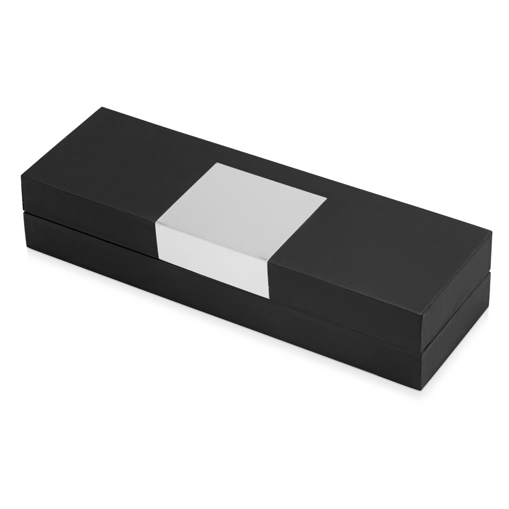 Футляр для ручки изготовлен из прочного картона с матовым покрытием, имитирующим кожу. Декоративная серебристая вставка придаёт футляру премиальный вид. Внутренняя часть отделана велюром, на котором ручка фиксируется при помощи атласной ленты.
