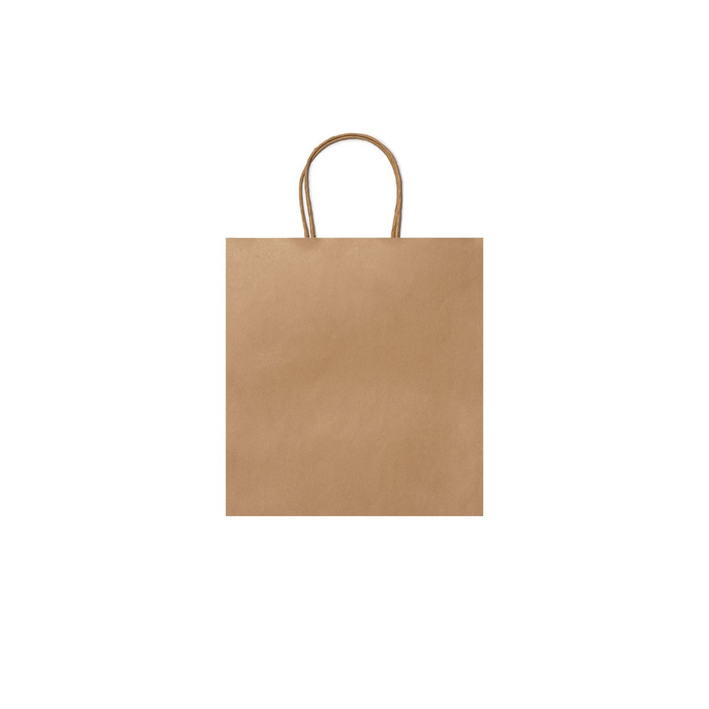 Бумажный пакет 110 г/кв.м натуральной отделки с усиленными короткими ручками витого дизайна.