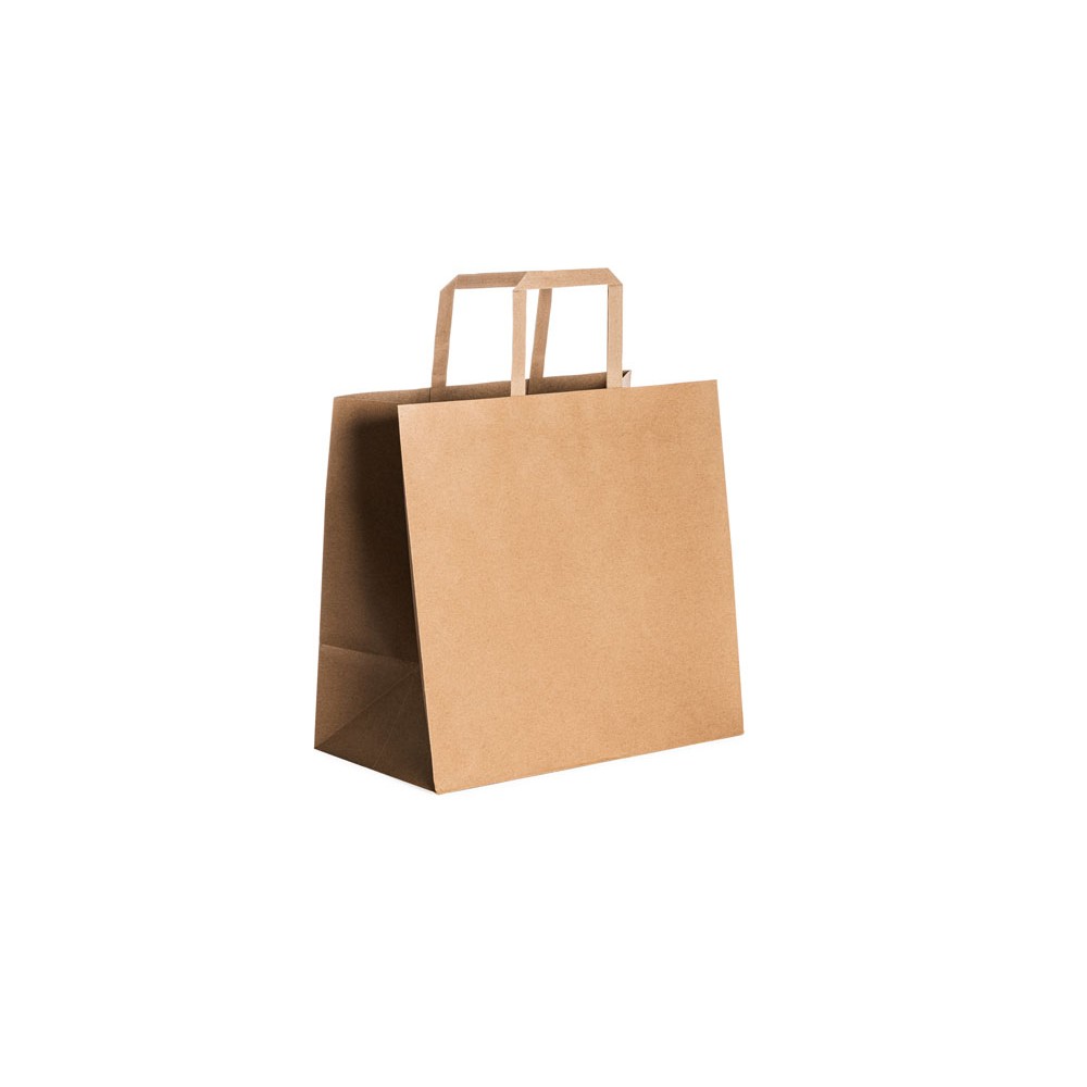 Бумажный пакет 80 гр натурального цвета. Усиленные короткие ручки плоской формы.