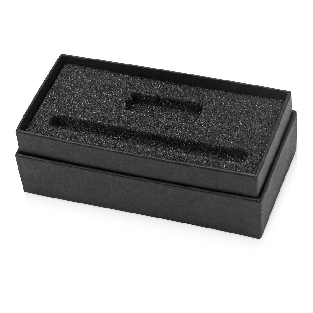 Коробка с ложементом для флешки и ручки. Коробка изготовлена из переплетного картона кашированного дизайнерской бумагой эфалин, ложемент изготовлен из поролона премиум-класса. Размеры секций: для ручки - 137 х 11 х 10 мм, для флешки - 55 х 19 х 8 мм.
