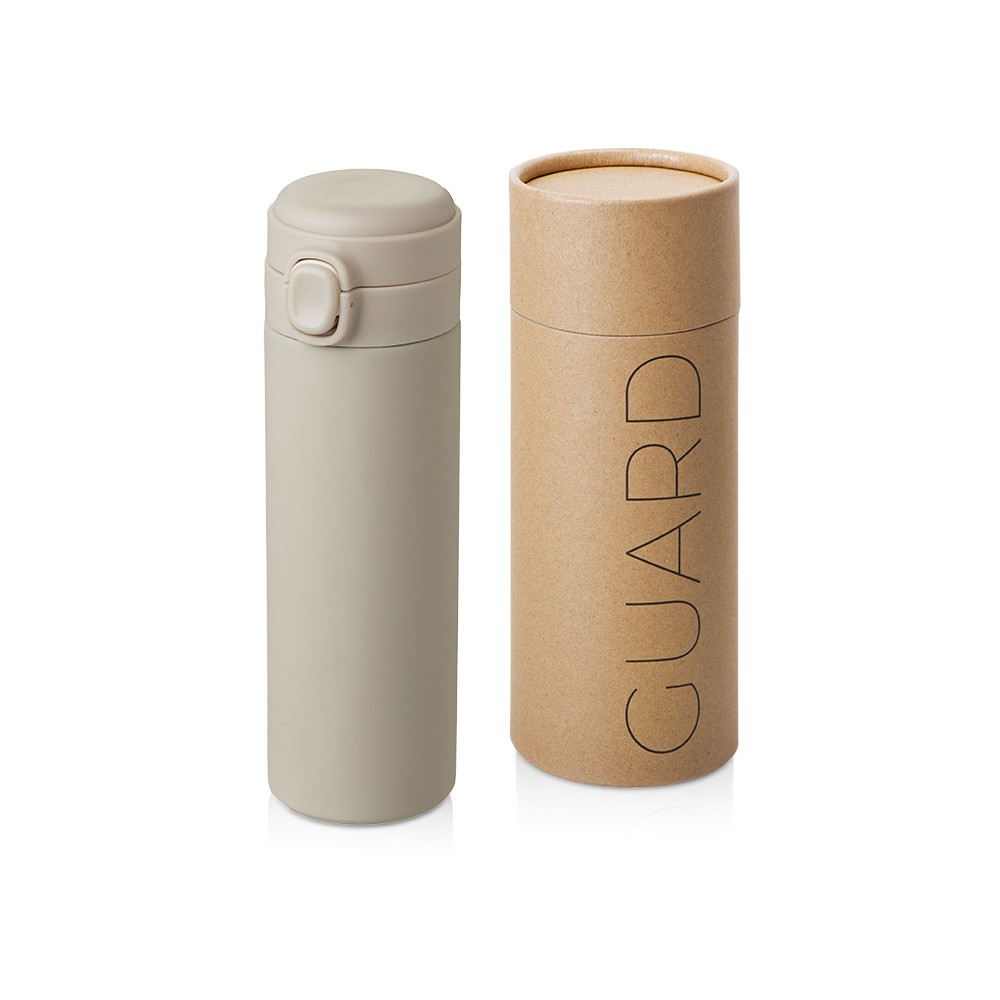 Вакуумная термокружка Waterline c кнопкой Guard, 400 мл, тубус, бежевый