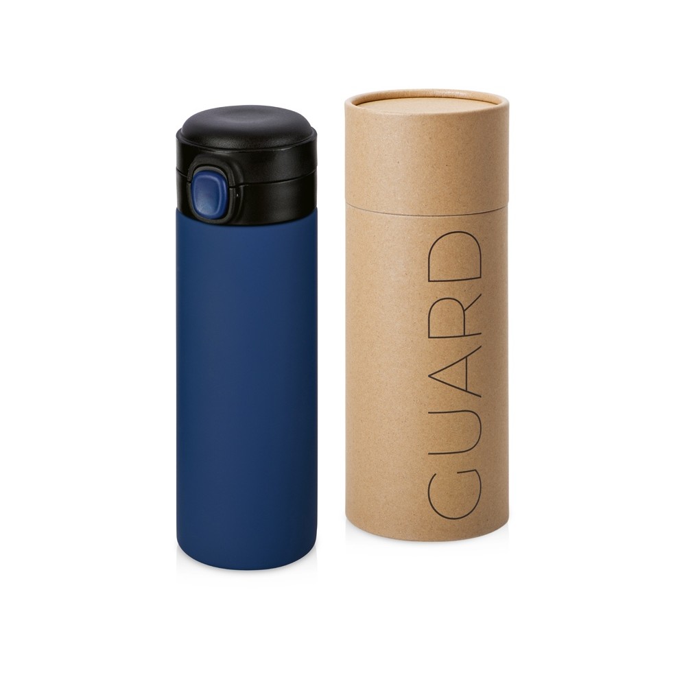 Вакуумная термокружка Waterline c кнопкой Guard, 400 мл, тубус, темно-синий