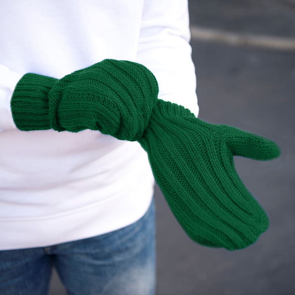 Основная часть варежки собрана вручную с помощью кеттеля (петля к петле), что делает конструктив бесшовным, без грубого шва в районе указательного пальца и верхней частирукавицы