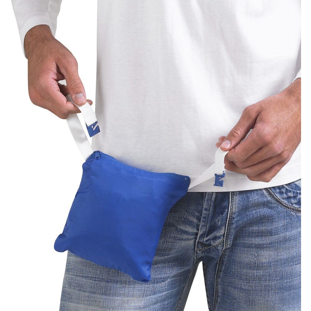 - Карман куртки служит сумочкой для нее: при необходимости ветровку можно компактно сложить, застегнуть карман на молнию и использовать пришитую эластичную тесьму, чтобы носить сложенную ветровку с собой на поясе