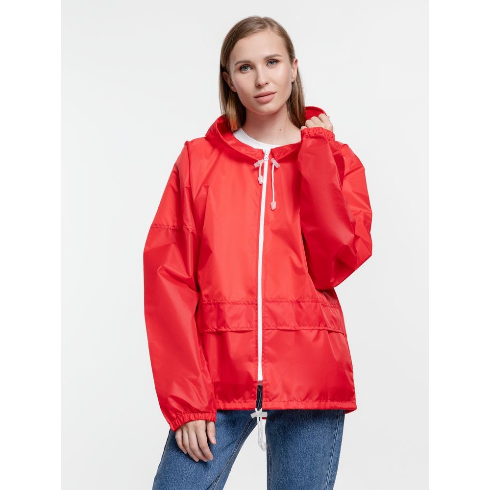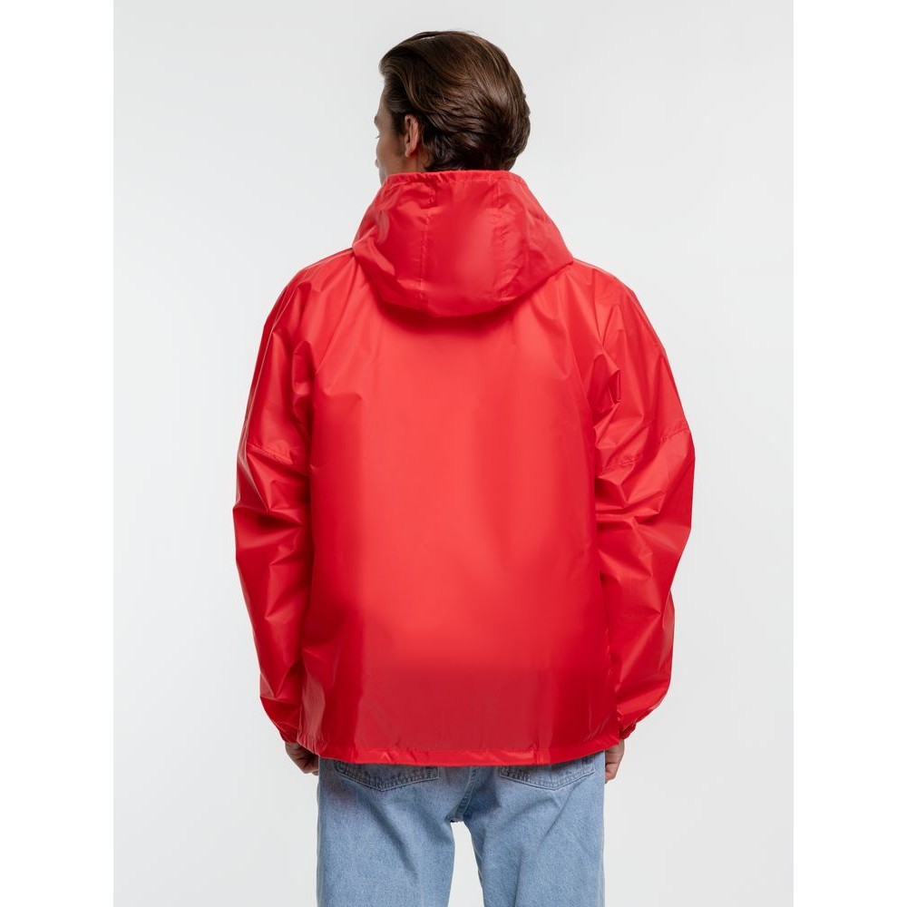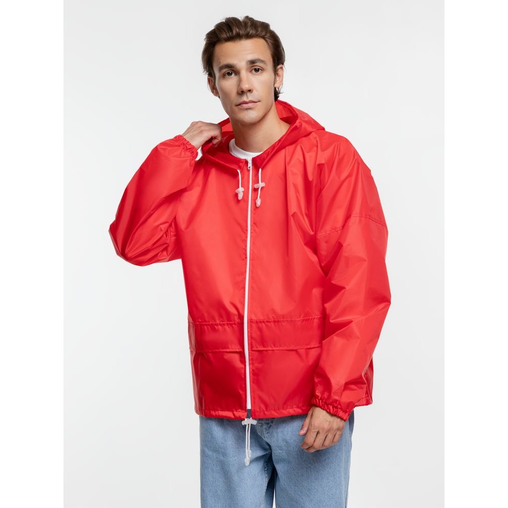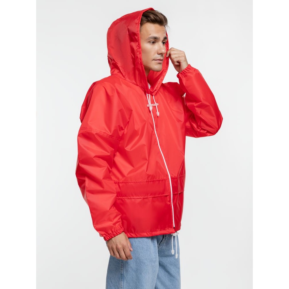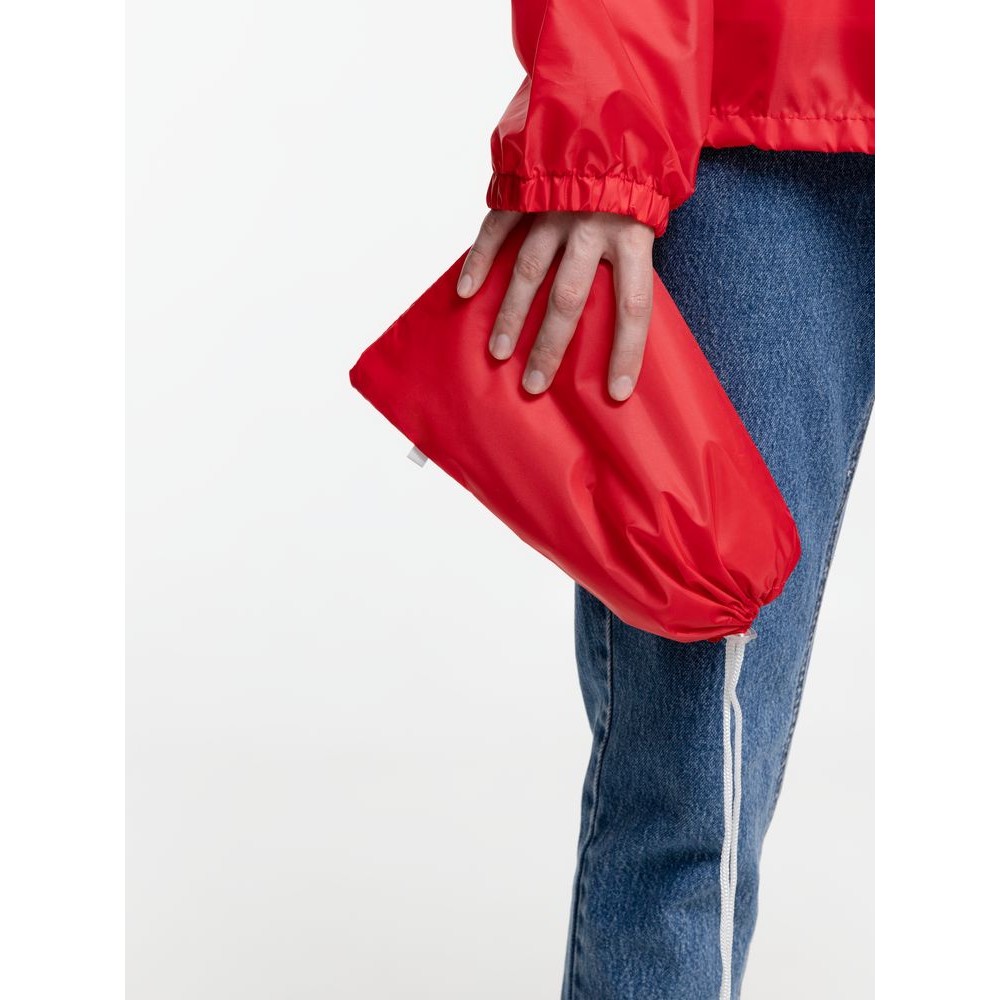 Укороченный дождевик свободного кроя из ткани таффета с влагозащитным покрытием. Складывается в мешочек — удобно брать с собой.