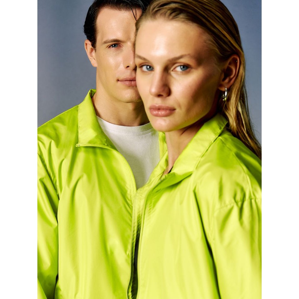 Тонкая гладкая ткань дюспо с притягательным матовым блеском почти бесшумна в использовании и пригодна для большого количества цветов печати. Качественный пошив ветровки добавляет ей презентабельности и гарантирует долгое использование, а яркий цвет привлекает внимание и не выгорает со временем.