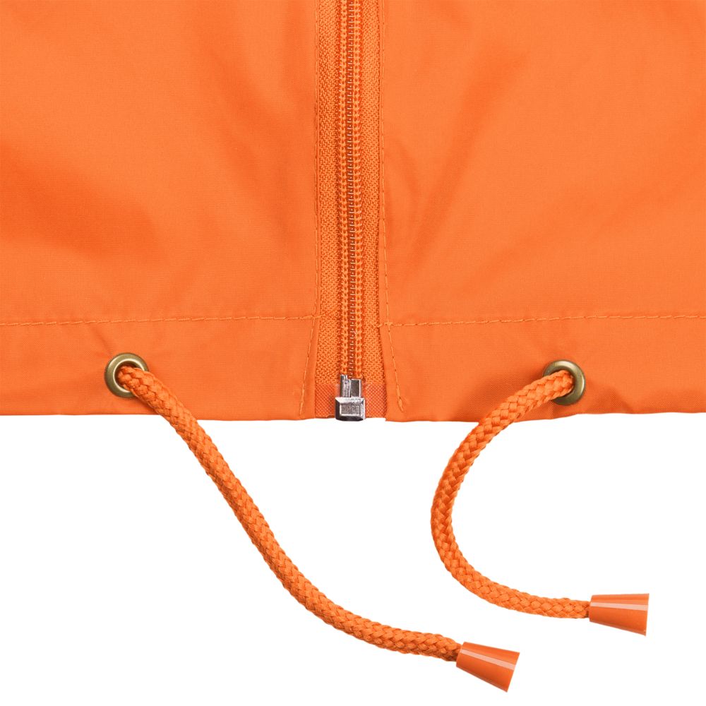 - Карман куртки служит сумочкой для нее: при необходимости ветровку можно компактно сложить, застегнуть карман на молнию и использовать пришитую эластичную тесьму, чтобы носить сложенную ветровку с собой на поясе.