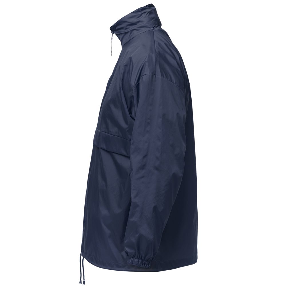 - Карман куртки служит сумочкой для нее: при необходимости ветровку можно компактно сложить, застегнуть карман на молнию и использовать пришитую эластичную тесьму, чтобы носить сложенную ветровку с собой на поясе.