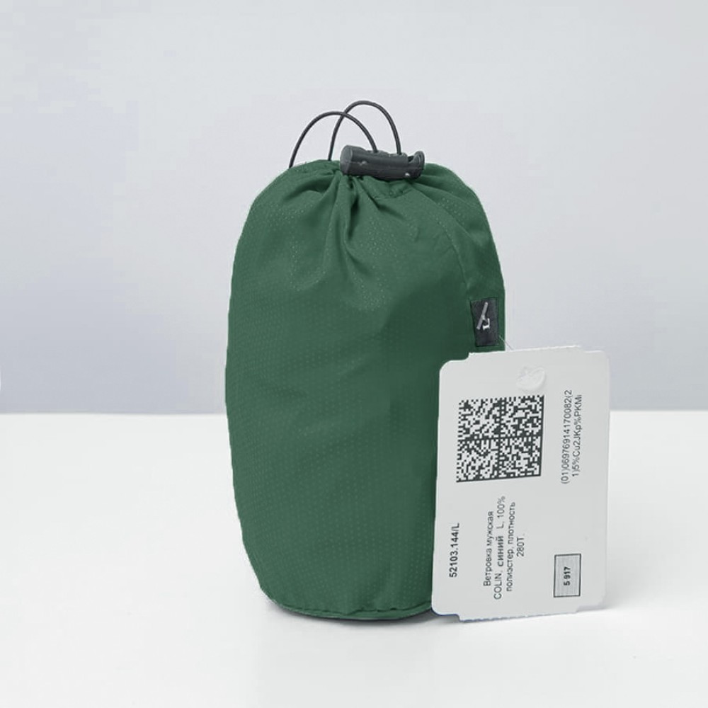 Несмотря на лаконичный дизайн, ветровки COLIN выгодно выделяются на фоне других промо-ветровок нанесенным на ткань микропринтом. Каждое изделие поставляется в сумке-футляре из основной ткани, на которой указан размер содержащегося в ней изделия, а также маркировка "Честный Знак".