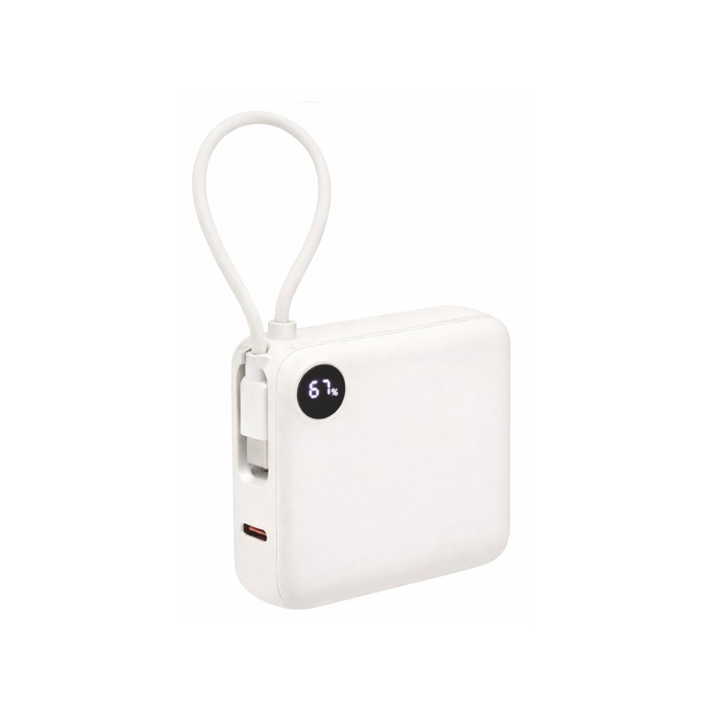 Внешний аккумулятор со встроенным кабелем Liri, QC/PD, 10000 мАч, теплый белый