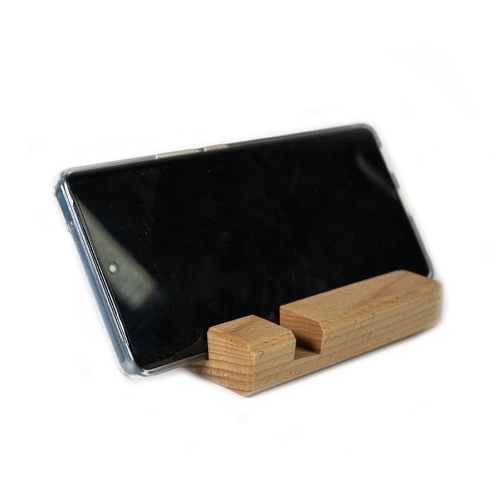 Подставка для смартфона, две разные выемки позволяют установить в держатель смартфон и/или планшет как в плотном бронечехле, так и без него, при этом смартфон и/или планшет будет хорошо зафиксирован, выполнениз премиум материала бук.