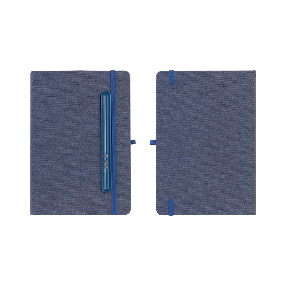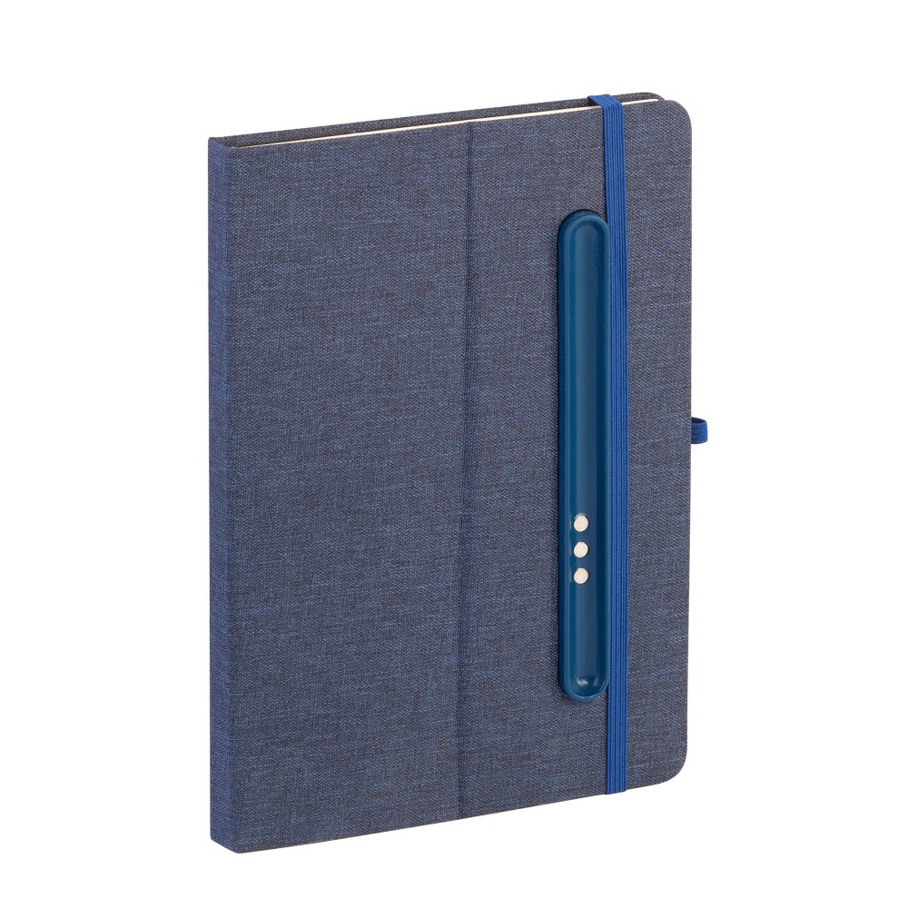- Блокнот формата А5 с резинкой-фиксатором и встроенным в обложку магнитным держателем для ручки. Внутренний блок состоит из 160 страниц в линейку бумаги плотностью 70 г/м2. Материал обложки изготовлен из переработанного (RPET) пластика. Магниты прочно и надёжно закрепляют металлическую ручку на обложке. Бонус – обложка трансформируется в удобную подставку для смартфона/планшета/ноутбука;