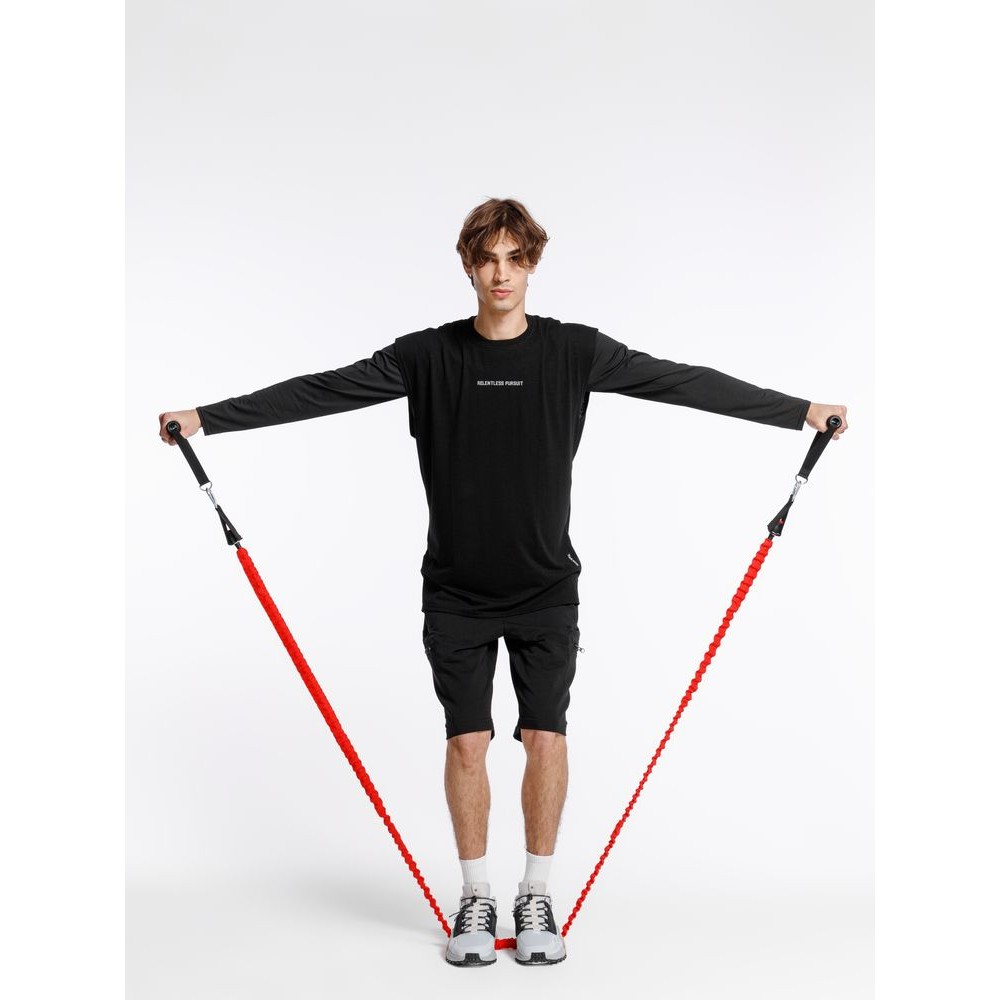 В набор входят 3 трубчатых эспандера с разной степенью нагрузки от 6,8 до 15,8 кг. Меняя и комбинируя их, можно усиливать или ослаблять нагрузку во время тренировки.