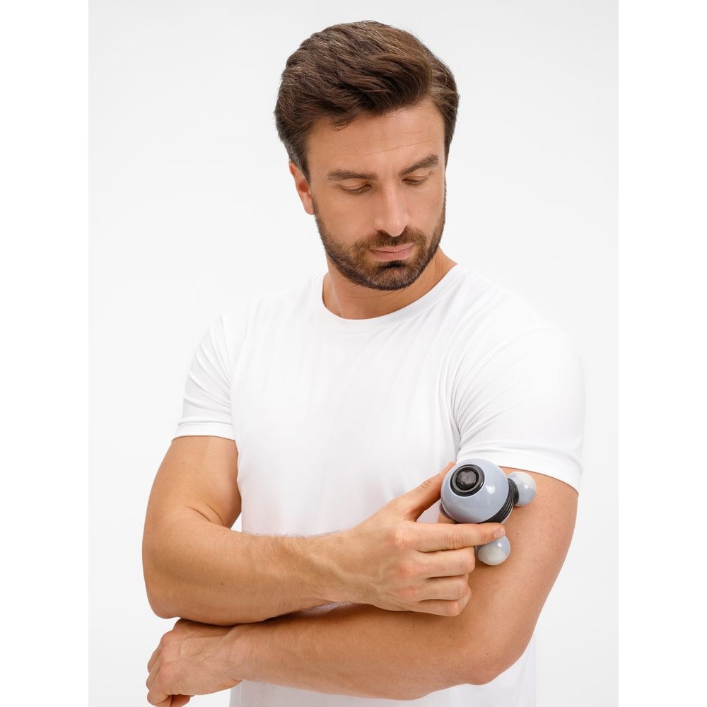 Массажер для тела Spacy — компактный вибрационный прибор, который поможет расслабить мышцы после напряженных тренировок или интенсивных физических нагрузок. Эргономичный дизайн и обтекаемые формы массажера напоминают космический корабль. Массаж осуществляется за счет вращения трех массажных головок, у которых предусмотрена также функция подсветки. Модель легко управляется одной кнопкой.