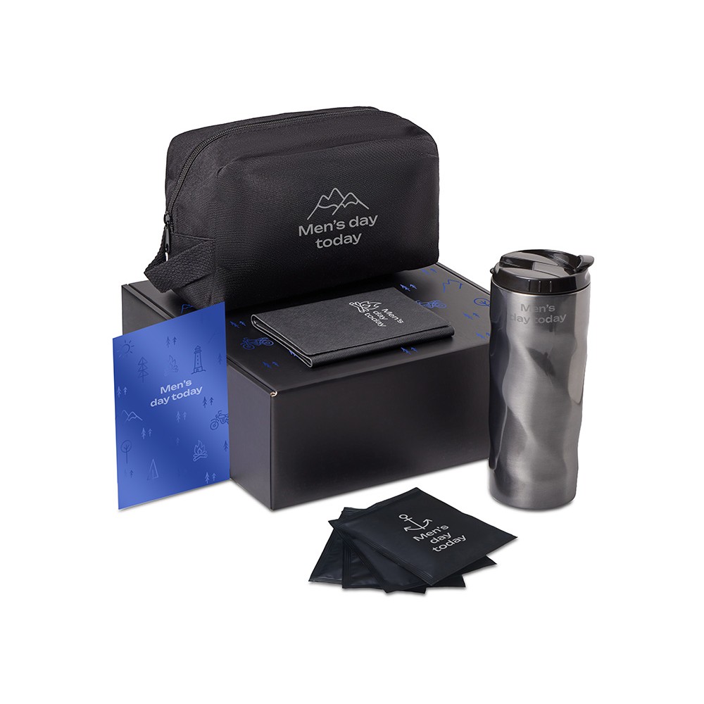 | Материал товара | термокружка - нержавеющая сталь, пластик; кофе в дрип пакете - пластик; обложка для паспорта - полиуретан; косметичка - переработанный оксфорд; мешок - нетканый материал (спанбонд) |