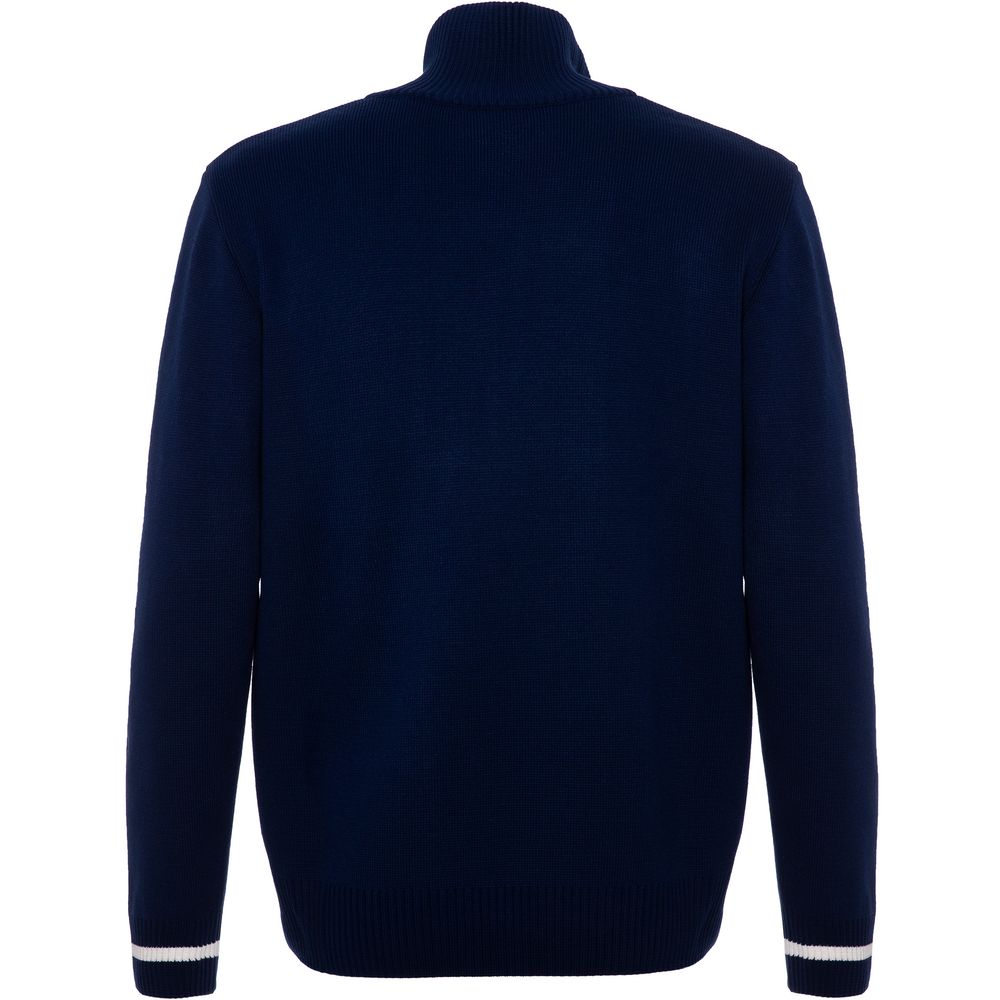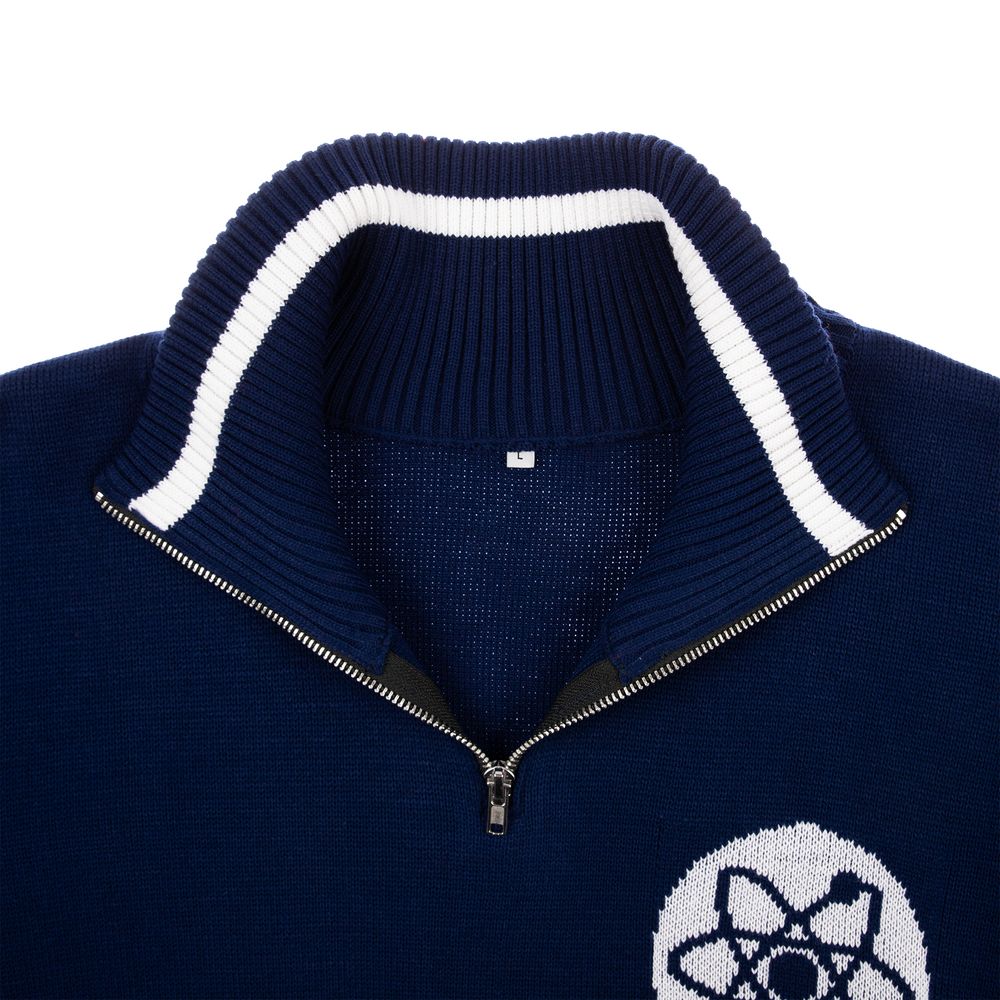 Олимпийка с вывязанным логотипом и индивидуальным рисунком в фирменной цветовой гамме.