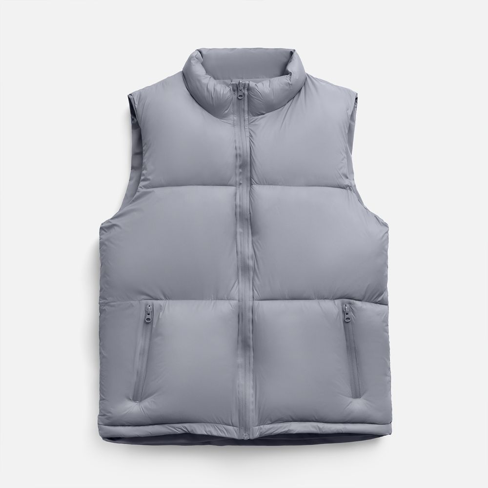 Двусторонний утепленный жилет V2 — это сразу два стильных образа в одном изделии. С одной стороны он стеганый и глянцевый, а с другой — матовый, лаконичный и уже без прострочки. Объемная и легкая модель оверсайз позволяет создать непринужденный и комфортный образ и в городе, и в путешествии.