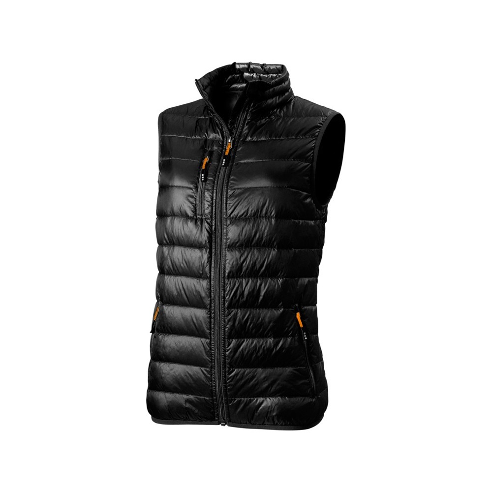 Женская пуховая жилетка Fairview. Стандартный покрой. Ткань не пропускает пух. Карманы для рук и нагрудный на молнии. Внутренний противоветровой клапан и защита подбородка. Эластичная обшивка внизу и на проймах. Ткань дышащая, ветронепроницаемая и влагоотталкивающая. Отражающий лого сзади. Ремешки на собачку (второй комплект в цвете антрацит). Жилет - версия победителя премии Reddot, куртки Scotia. Ткань из 100% нейлона с матовым и блестящим водоотталкивающим покрытием, 20D. 80% пух и 20% перо.