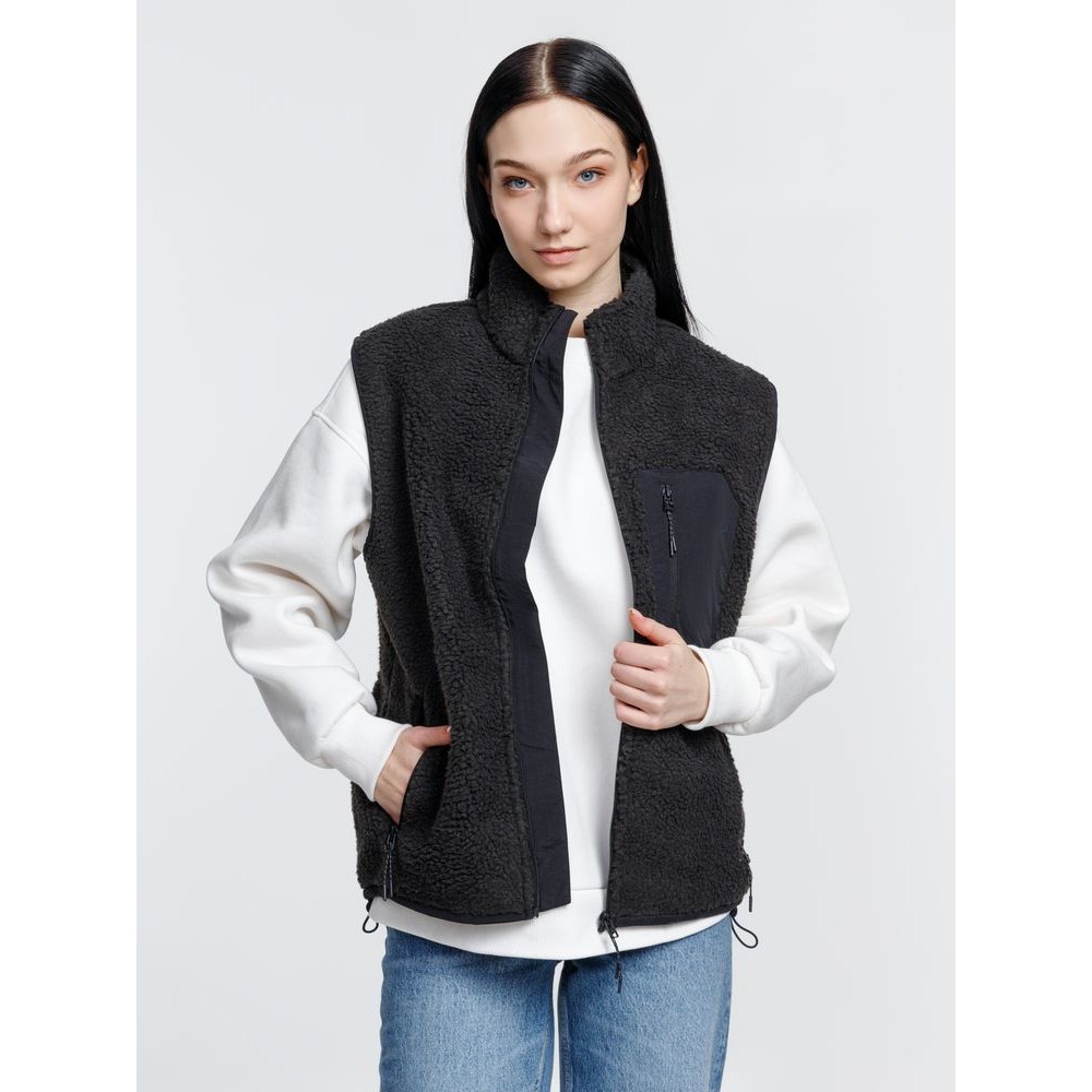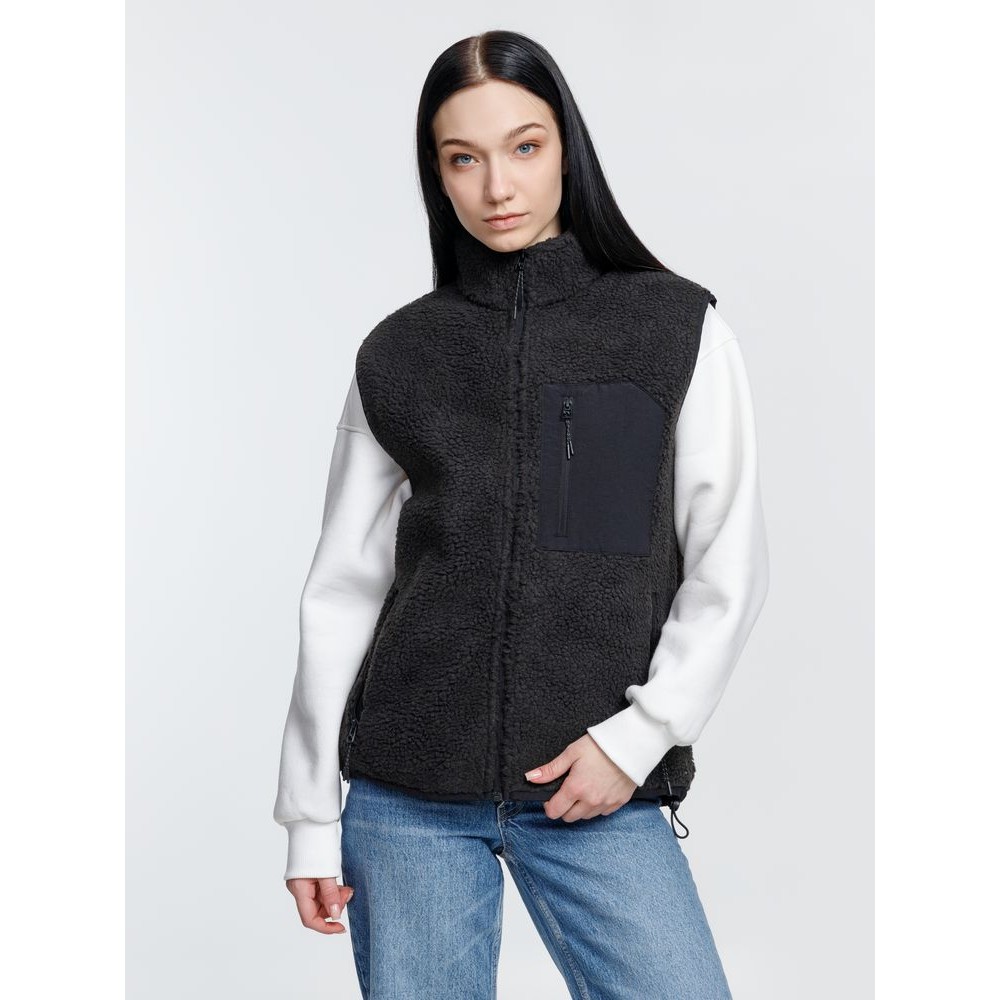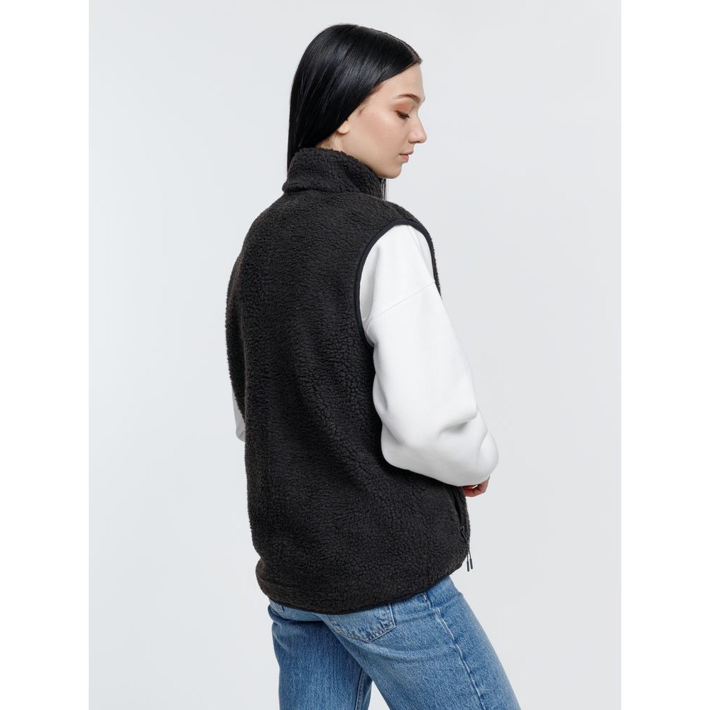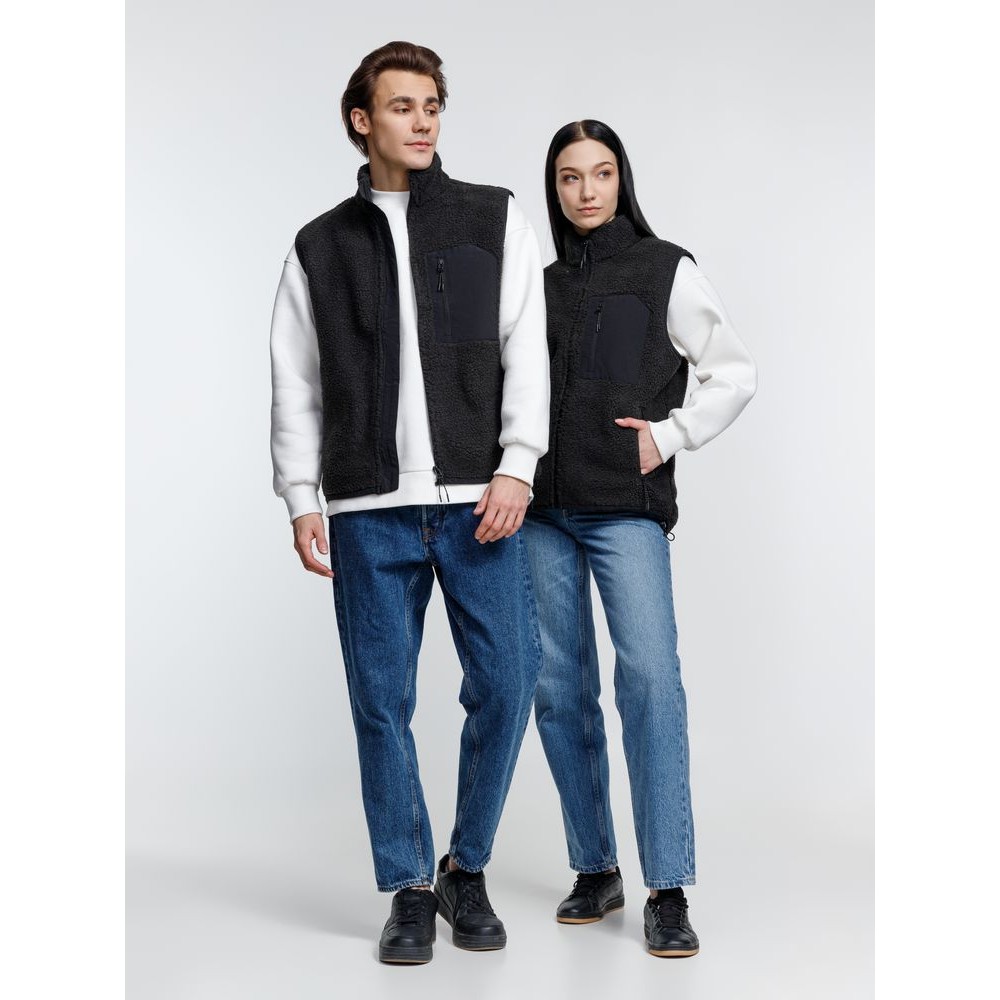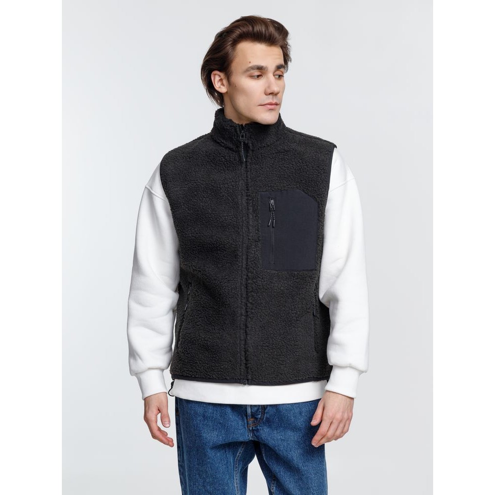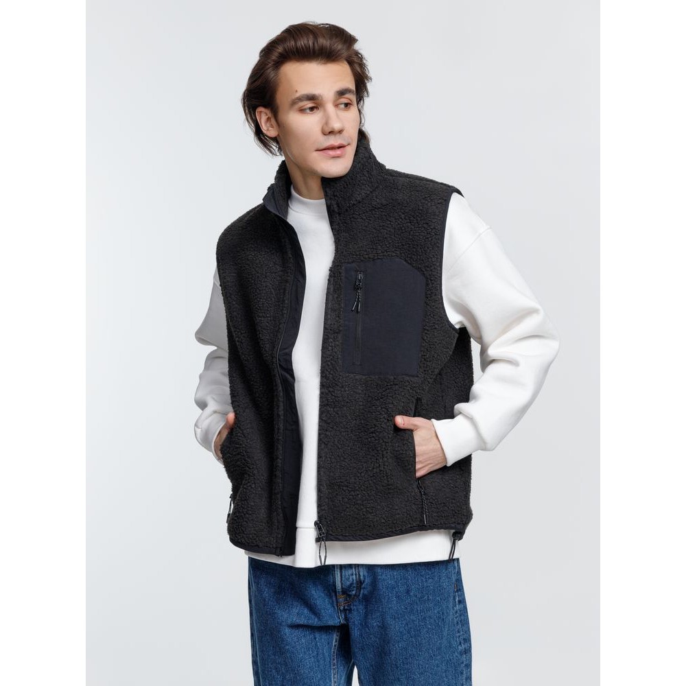Жилет унисекс из фактурной искусственной шерпы с гладкой отделкой из таслана.
