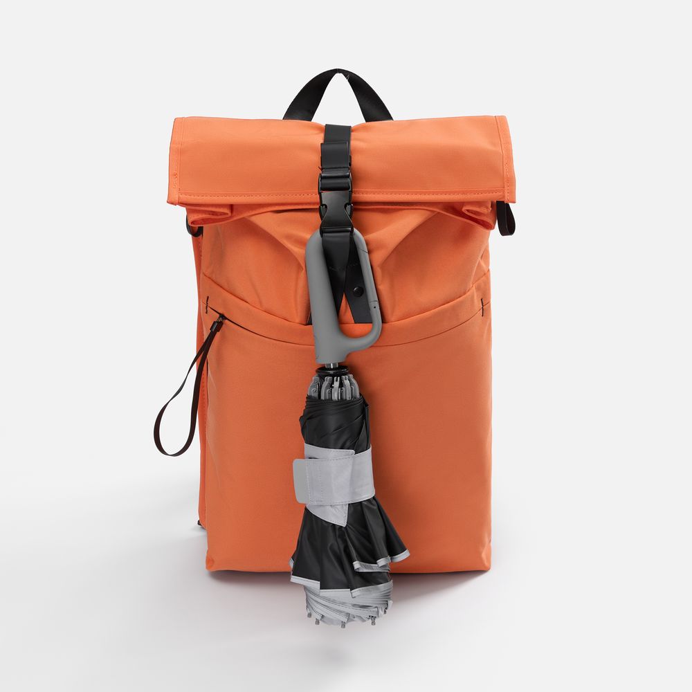Складываясь после дождя, зонт прячет мокрую поверхность внутри, а сухая остается снаружи: так в закрытом положении он не побеспокоит окружающих и не намочит одежду. За ручку-карабин зонт удобно подвесить, например, на рюкзак.