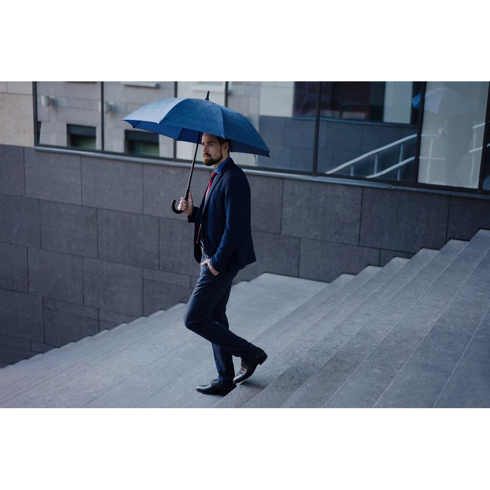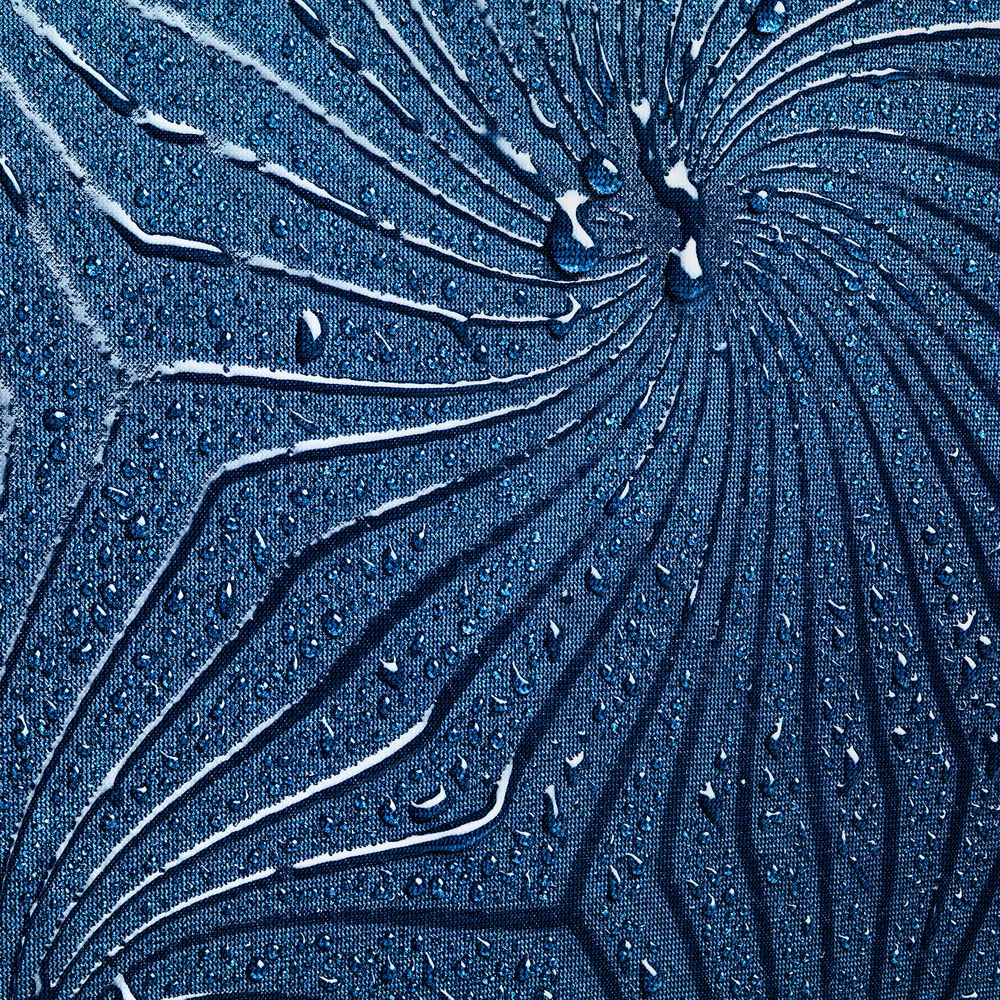 На первый взгляд — это классический зонт-трость в строгом дизайне: система защиты от ветра, прорезиненная ручка, лаконичные линии. Но в первый же дождь происходит магия — на поверхности проявляются изящные узоры, превращая защиту от непогоды в арт-объект. После высыхания рисунок бесследно исчезает, оставляя только намёк на скрытую индивидуальность.