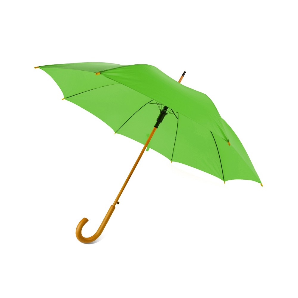 Полуавтоматический зонт-трость с деревянной ручкой выполнен из качественных материалов и устойчив к сильным порывам ветра. Яркие, сочные цвета в ассортименте.
