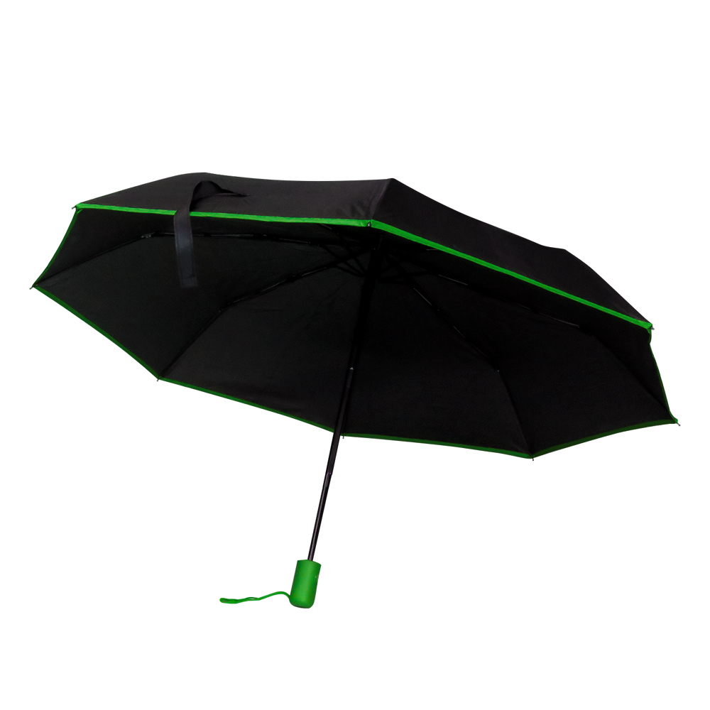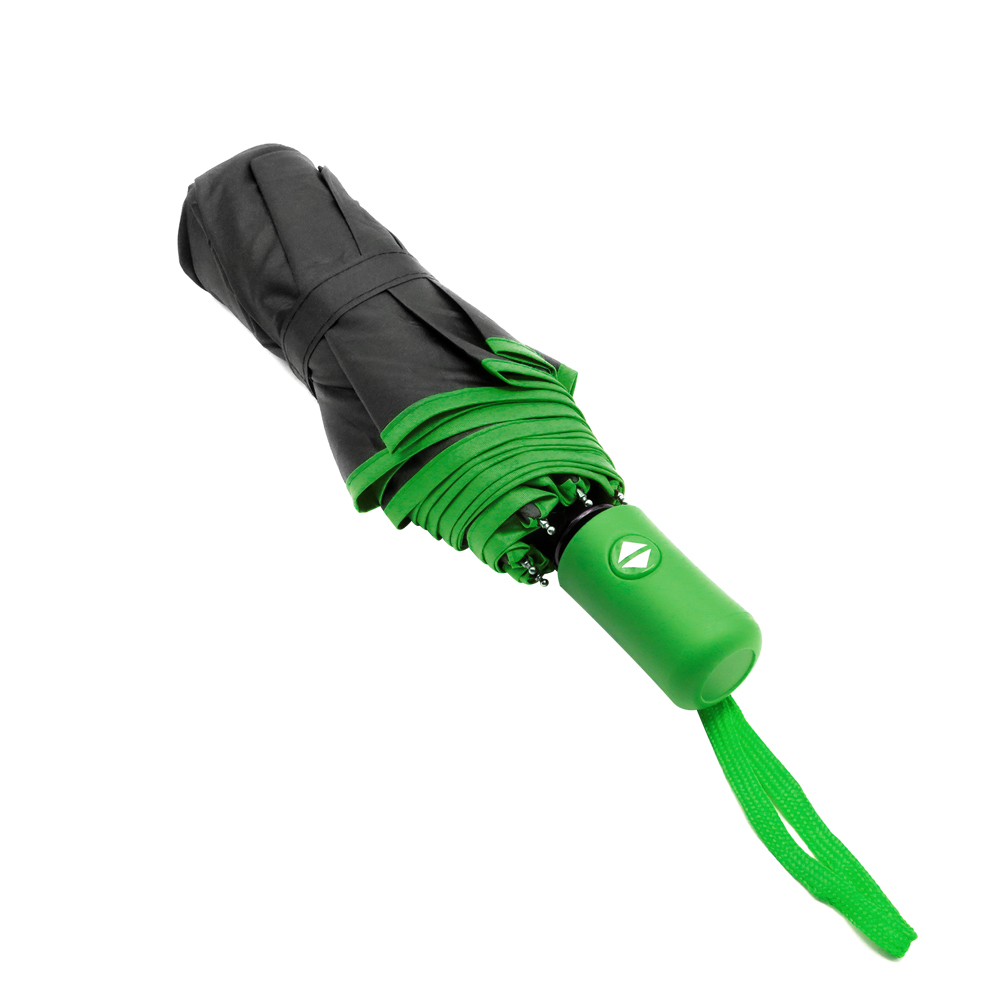Противоштормовой автоматический зонт Line выполнен из ткани эпонж 190T. На таком материале вода превращается в капельки и скатывается, а сам зонт остается сухим. Черный металлический каркас с ветрозащитной функцией. Спицы из стекловолокна, а специальное устройство препятствует поломке спиц при резких порывах ветра. Ручка софтач (цвет по PANTONE® максимально приближен 7741C) - в тон строчке по краю зонта.