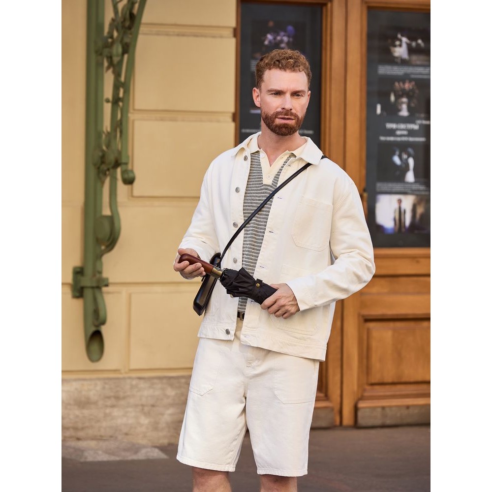 - Деревянная прямая ручка с кнопкой открытия и закрытия зонта
