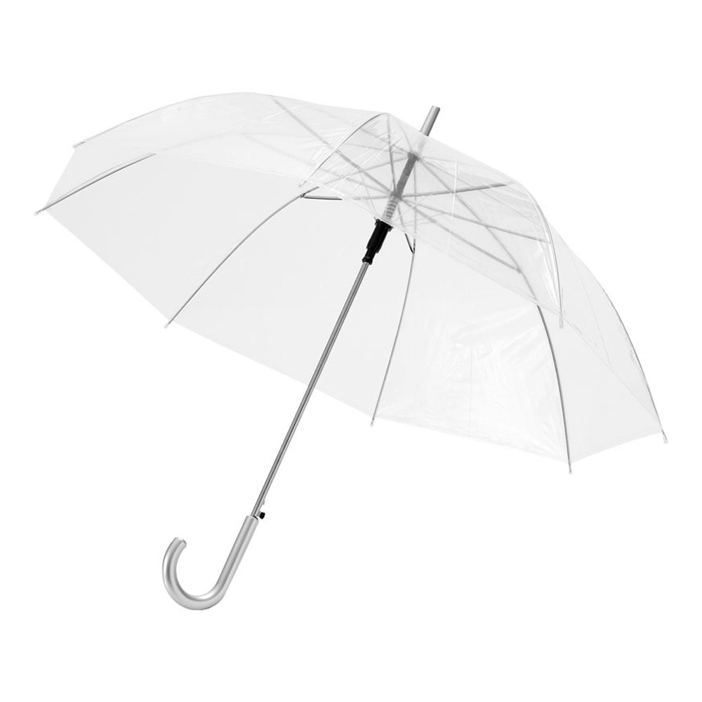 Прозрачный полуавтоматический зонт 23. Зонт 23 с металлическими спицами и тростью и пластиковой ручкой. POE.