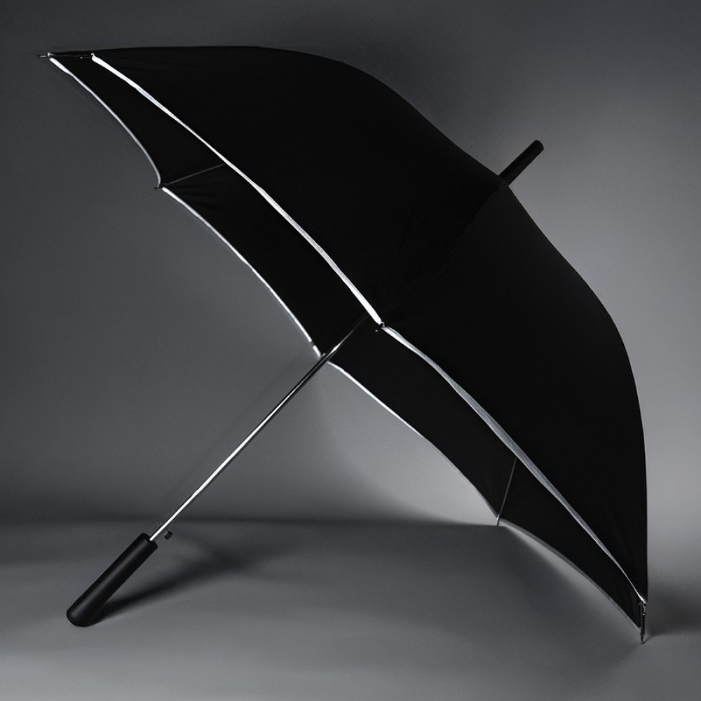 Технические характеристики Зонт-трость "Reflect", механический, эпонж, чёрный со светоотражающей окантовкой в чехле с ручкой