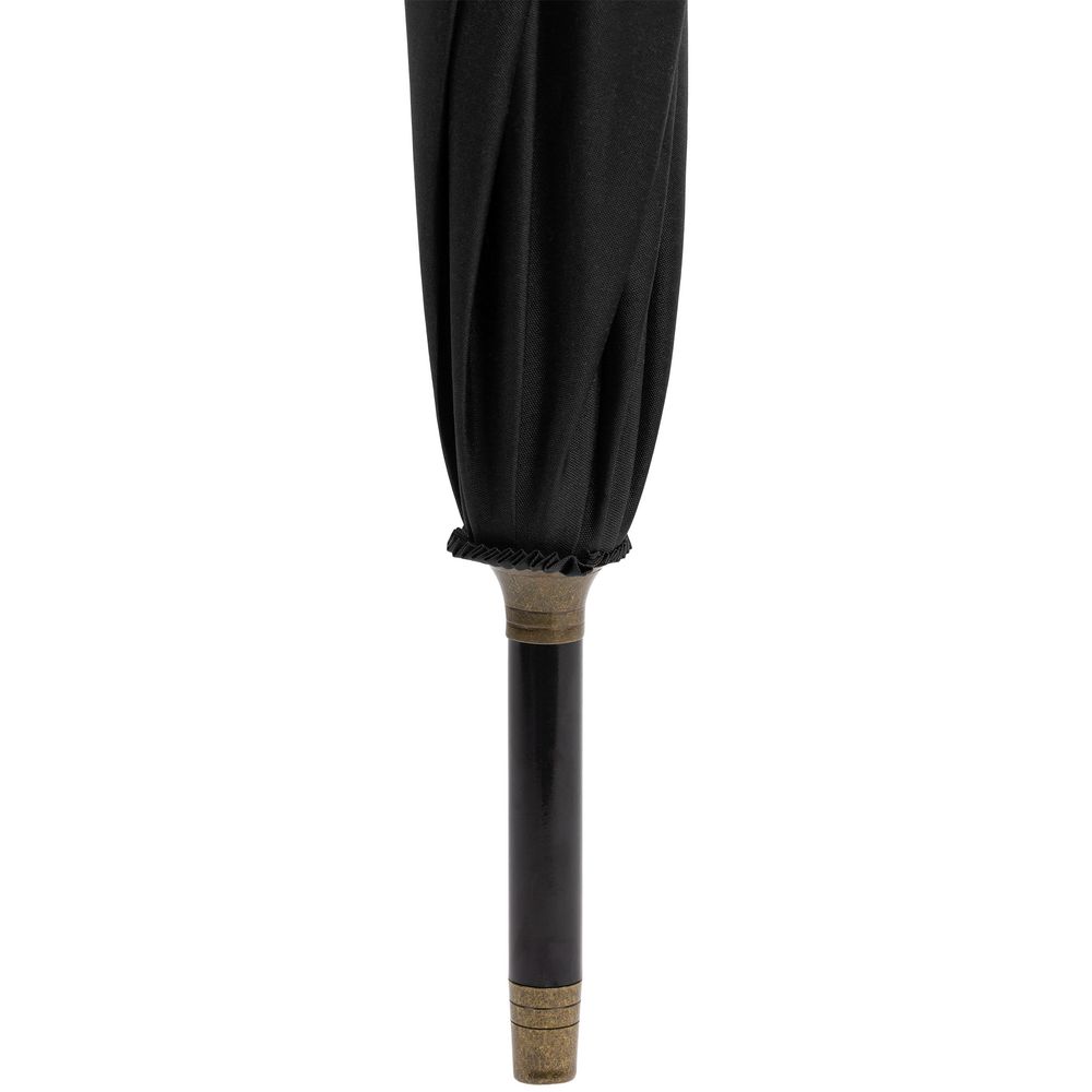 - Прямая деревянная ручка с петлей из натуральной кожи и кнопкой открытия зонта