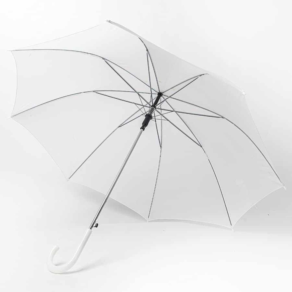 Технические характеристики Зонт-трость с пластиковой ручкой, полуавтомат; белый; D=103 см; нейлон